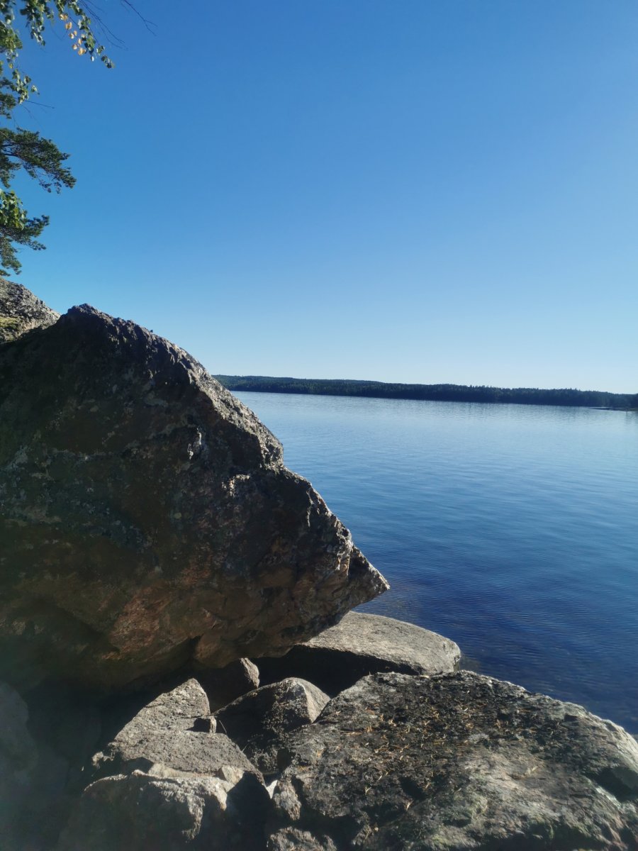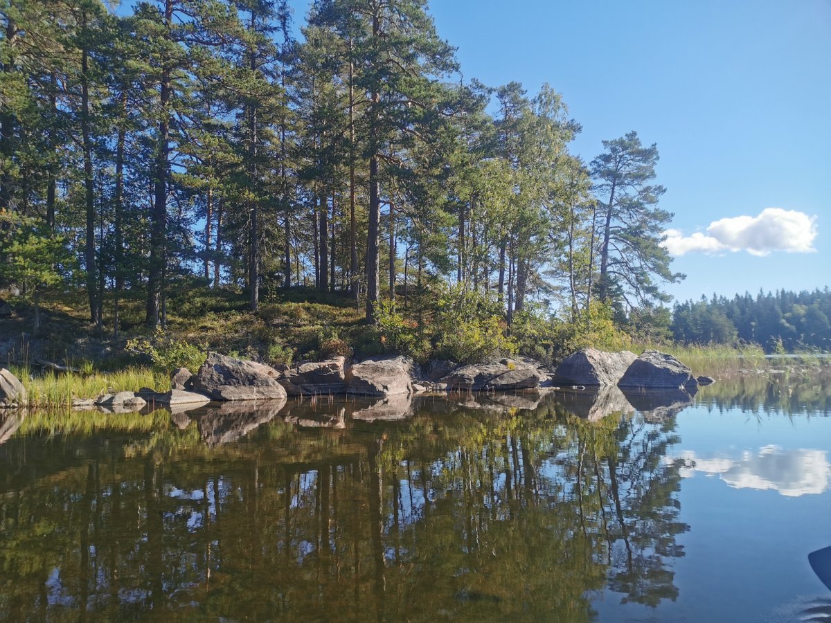- Bei schönem Wetter haben wir uns dann die erhoffte Zeit genommen, um einfach mit dem Kanu Buchten, Inseln und den See Stora Bör zu erkunden. Wenn wir nach einer mehrstündigen Kanutour wieder in unserer versteckten Bucht angelegt haben, fühlten wir uns sofort in unserem Camp wie zu Hause. Mit jedem weiteren Tag gingen uns die alltäglichen Abläufe immer leichter von der Hand -> Routine schenkte uns dadurch mehr „Urlaubszeit“.