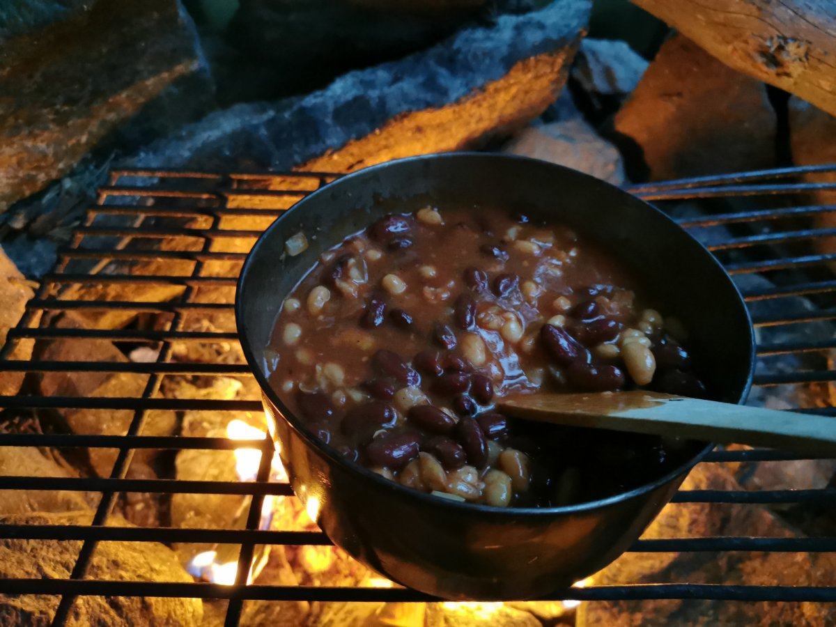- Abendessen: Wir haben Gerichte aus dem coolen Outdoorkochbuch von Scandtrack ausprobiert und mit unseren Vorlieben garniert. Meistens haben wir parallel gekocht, weil Veggie und André. Ein Vorteil dieser Jahreszeit, wenn auch kalt, nass und windig -> wir hatten keinerlei Plagegeister oder hungrige Insekten und konnten vorbereitetes Essen/ Geschnibbel unbedacht auf unserer bodenliegenden „Tisch-Tarp-Plane“ unbeaufsichtigt liegen lassen.
