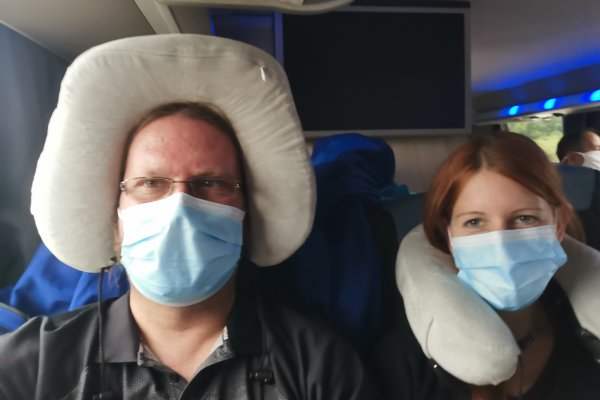 Die lange Busfahrt erwies sich überraschenderweise als sehr viel kurzweiliger als gedacht, so dass die Zeit quasi wie im Fluge verging. Dank des gut durchdachten Hygienekonzepts seitens Scandtracks, hatten wir außergewöhnlich viel Platz im Bus.