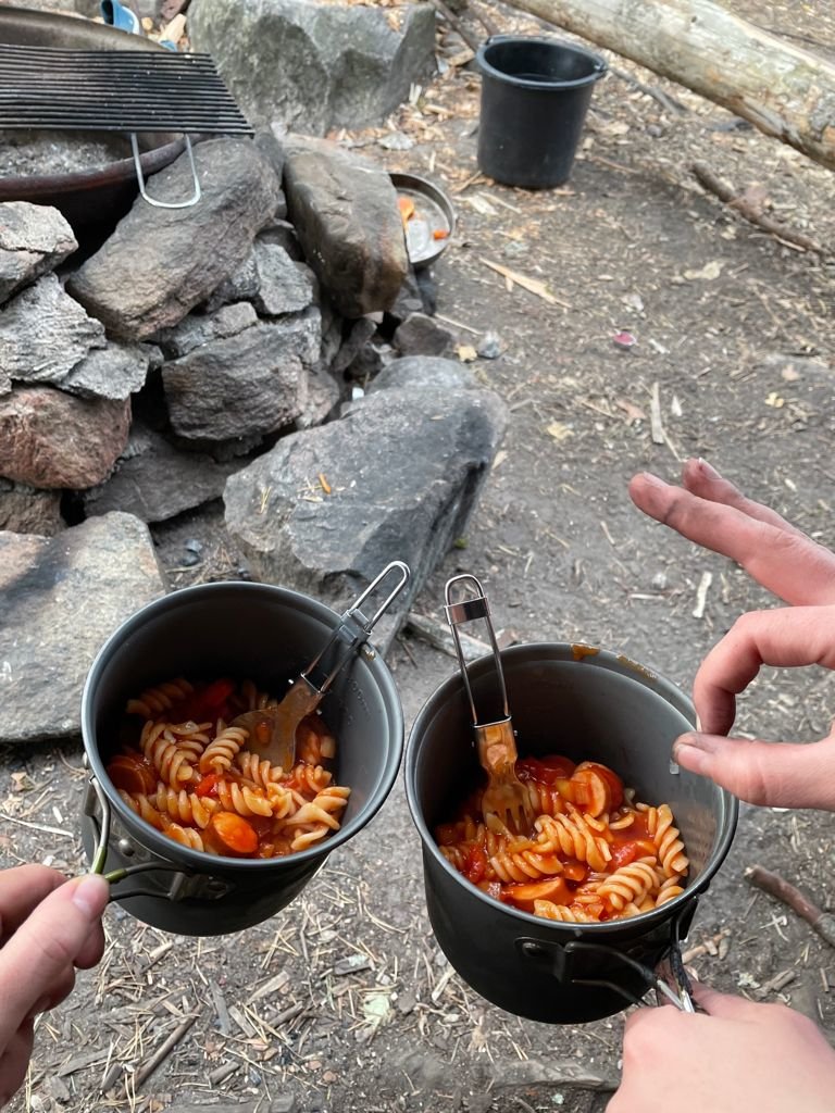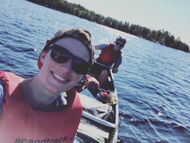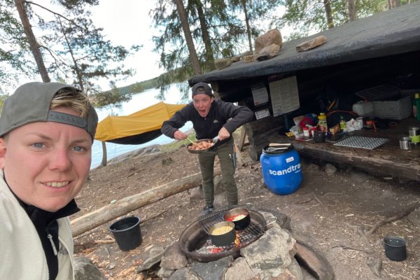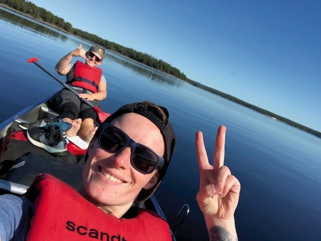 Am 03.09.2021 war es endlich soweit. Nachdem wir ein ganzes Jahr warten mussten, weil unsere Reise wegen Corona abgesagt wurde, ging es nun endlich in den lang ersehnten Schweden Urlaub. Gegen 16:45 Uhr machten wir uns auf dem Weg zum Messe Gelände in Berlin. Pünktlich auf die Sekunde kam dann um 18 Uhr der Reisebus, welche uns dann an unser Ziel bringen sollte. Nach dem Check Inn wurde es sich „gemütlich“ gemacht im Bus. Gegen 23 Uhr erreichten Puttgarden wo es dann auf die erste Fähre ging. Da ich Seekrank war, wusste ich schon, dass die Überfahrt kein Spaß machen würde und so kam es dann auch ☺. Dieses „gewackel“ war wirklich nicht so schön und echt vergleichbar mit einem leichten Pegel. Nach 45 min. wurde ich dann erlöst und wir konnten zurück in den Bus um dann durch Dänemark zu fahren. Um Ehrlich zu sein habe ich davon nichts mitbekommen aber mir wurde gesagt, dass wir ein zweiten Fährstop eingelegt hatten, der jedoch nu 20min dauerte. Als ich das nächste mal die Augen geöffnet habe, waren wir schon in Schweden. Einfach nur ein Traum!!! Gegen 9Uhr kamen wir an der Basis in Lennardsfors an und wurden von der netten Reiseleiterin in Empfang genommen. Nach ein paar kurzen Worten ging dann alles echt super schnell :,D wir sind einen kleinen Fußmarsch zur „Umladestation“ gelaufen, haben unsere Ausrüstung bekommen (Kanu, Schwimmwesten, Paddel, Lebensmitteltonne, Werkzeugkiste) unsere Klamotten in die Packsäcke umgepackt und um 11Uhr saßen wir im Kanu auf dem Weg zu unserem ersten Spot ☺