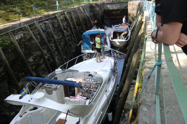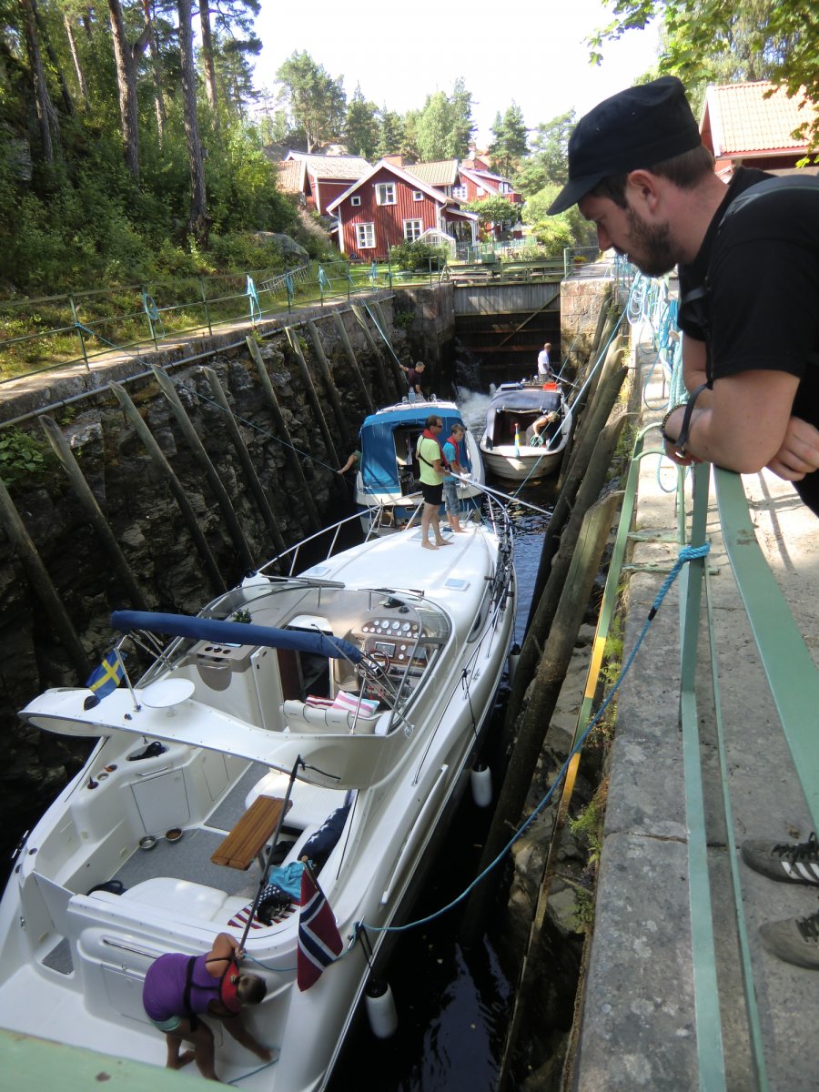 Lennartsfors ist klein und gemütlich außer ein paar kleinen Häuschen und einer Bar gibt es dort nicht viel. Der Supermarkt „is closed – forever“ wie uns eine einheimische Anwohnerin mitteilte. Wir begutachten das Spektakel an der Schleuse. Der Höhenunterschied ist enorm. Über drei Bassins wird man nach oben bzw. unten befördert. Im Nachhinein ärgern wir uns, dass wir diese Erfahrung leider nicht mitgenommen haben.