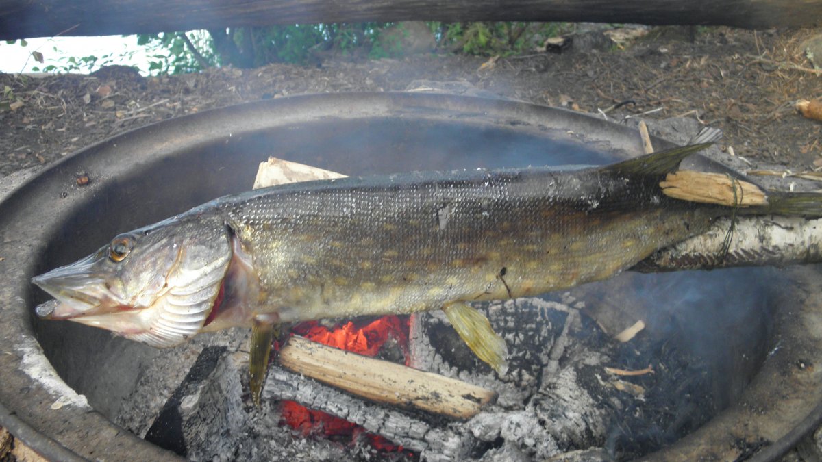 Als wir den Rückweg antreten knallt direkt ein Hecht auf meinen Wobbler. Diesmal nehme ich ihn mit für meine nächstes Experiment: Hecht am Stock. Wir wissen nicht so recht wo wir diese Nacht campieren. Letzten Endes landen wir wieder dort wo wir am Morgen gestartet sind. Dort treffen wir auf einen jungen Vater und seinen 12jährigen Sohn. Beide haben bisher vergeblich versucht einen Hecht an die Rute zu bekommen. Ich präsentiere ihnen meinen Fang und beide sind Feuer und Flamme. Ich gebe ihnen ein paar Tipps für die nächsten Tage. Am letzten Tag der Reise treffen wir uns im Scandtrack Lager wieder. Ich erfahre, dass sie kurz nachdem sie uns am nächsten morgen verlassen haben einen dicken Hecht an der Angel hatten und später auch noch einen stattlichen Barsch landeten. Ich freue mich für sie wie ein kleines Kind.