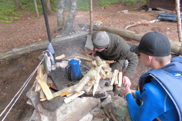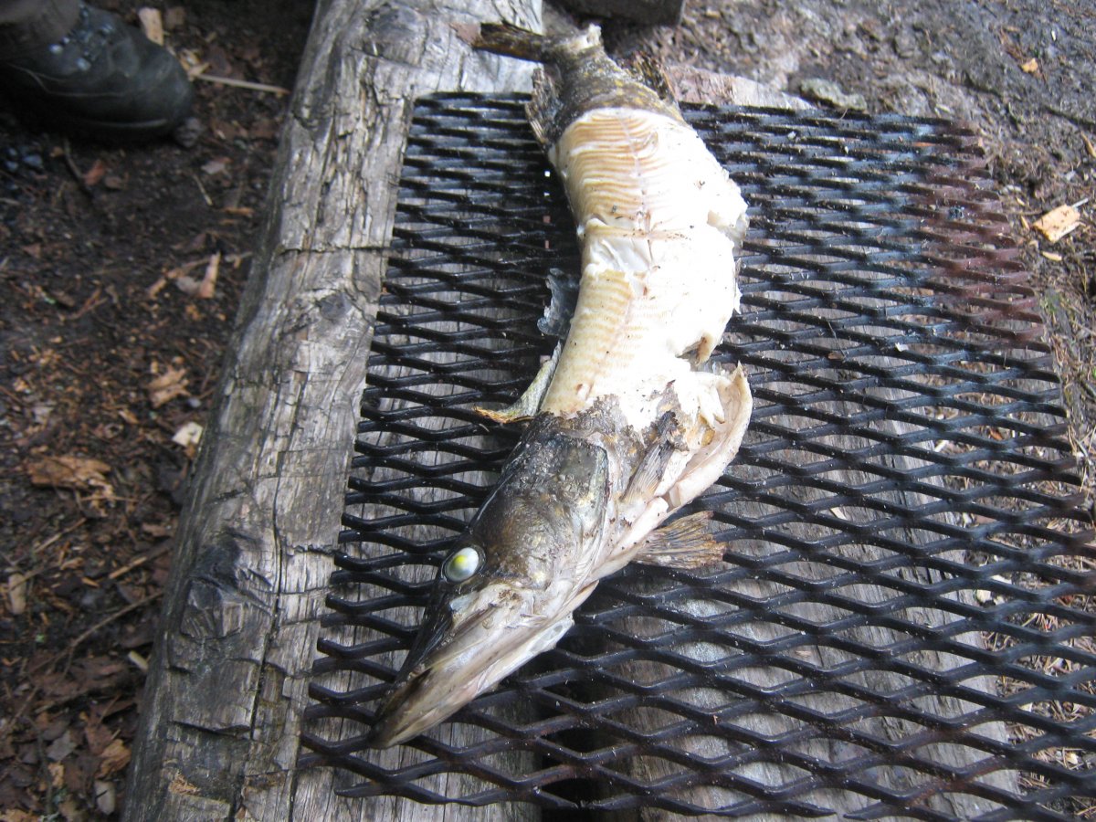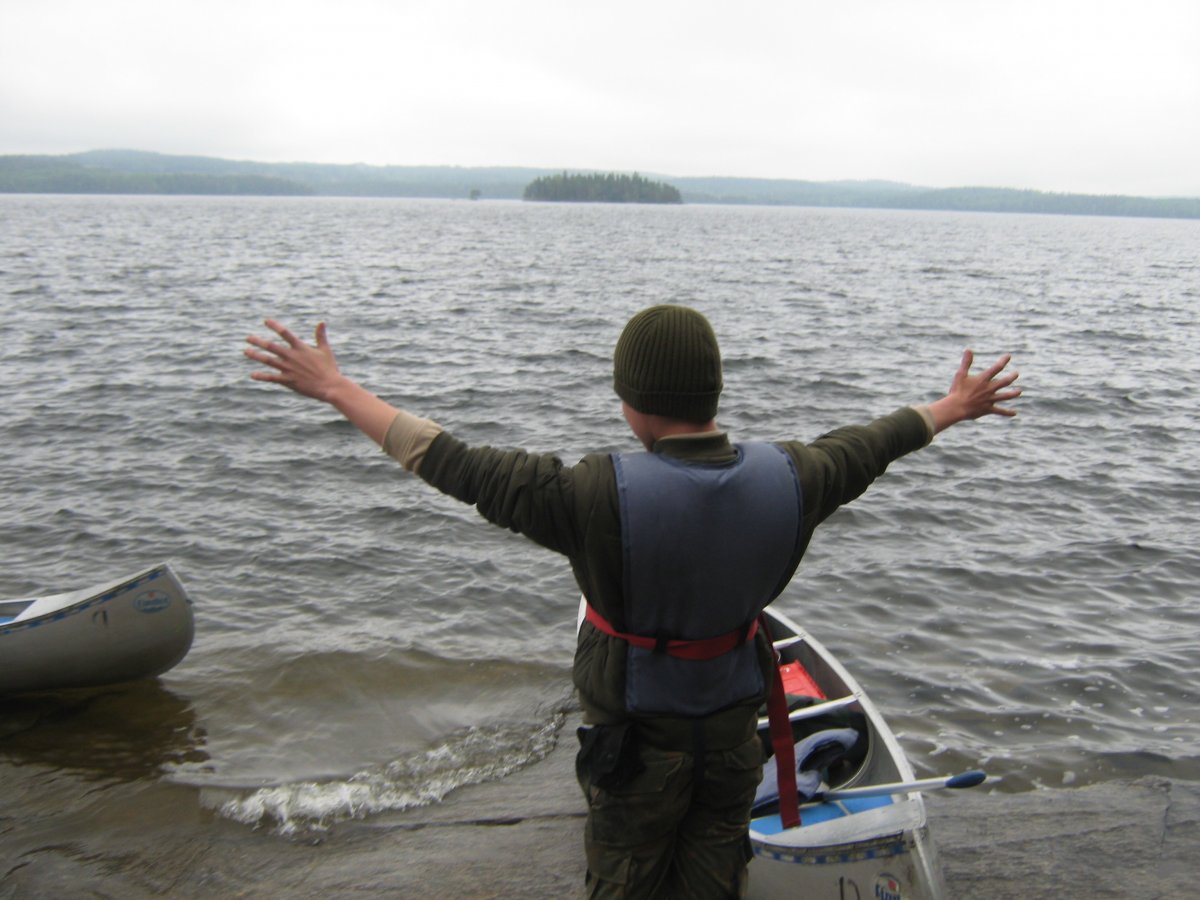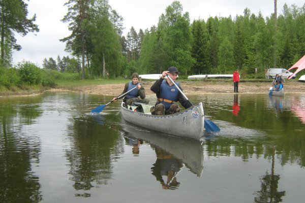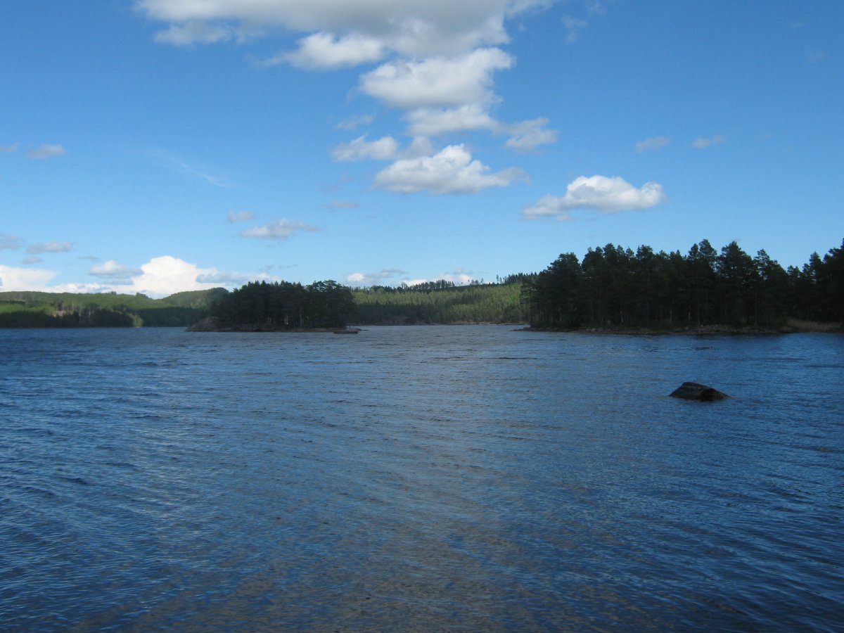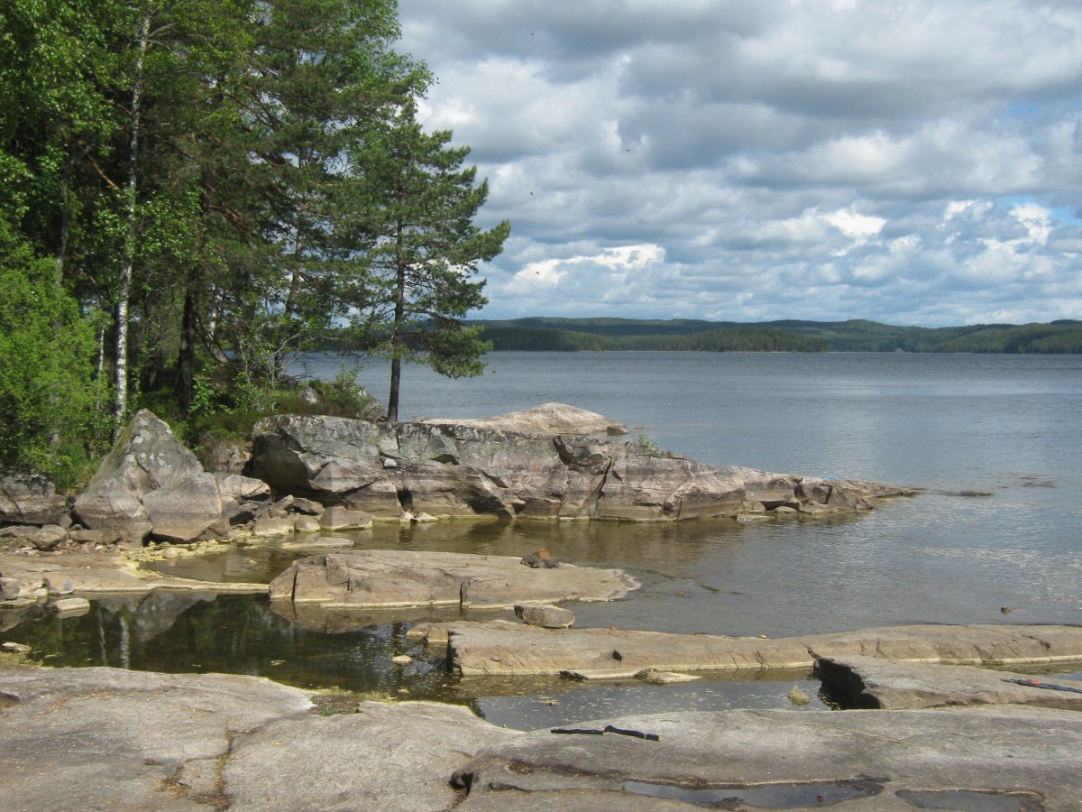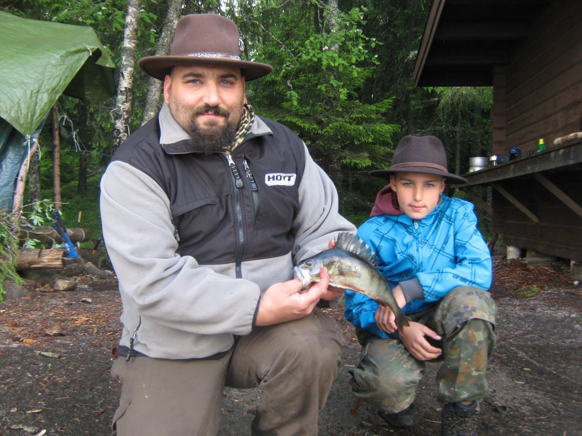 Die Übergabe der Kanus und der Verpflegung und Ausrüstung erfolgte auf dem Campingplatz Grinsby wo alles schon parat zur Verfügung stand. Nach Übernahme der Ausrüstung, Verpflegung und einer kleinen Kanueinweisung ging das Abenteuer endlich los. Unsere Insel war ca. 3-4 Km entfernt. Auf dem Weg zur Insel warfen wir unsere Angeln mit Wobbler raus, wofür wir gleich belohnt wurden. Nach ca. 10 min. hatten wir den ersten Biss mit einem 80 cm Hecht an der Rute. Auf der Insel angekommen luden wir die Kanus aus, verarbeiteten den Fisch und machten erstmal Feuer. Im Anschluß schlugen unsere Zelte im geschützten Wald auf. Da unser Abendessen gesichert war, erkundeten wir die Insel, was der absolute Hammer war. Eine solche Naturschönheit hatten wir bisher selten gesehen. Die ganze Insel ist mit Blaubeerbüschen und Preiselbeerbüschen überzogen, welche aber leider noch nicht reif waren, da wir Anfang Juni dort waren und somit mussten wir auf die leckere von Mutter Natur gespendete Süßspeisse verzichten. Bei der Betrachtung der Lebensmittel, die wir von Scandtrack bekommen hatten, machten wir uns Sorgen, wer das üppige, reichhaltige und gut abgestimmte Verpflegungspacket alles Essen soll.Den Abend verbrachten wir am Lagerfeuer bei lecker gegrilltem Hecht mit Kartoffeln. Da es um diese Jahreszeit nicht richtig Dunkel wird, waren wir etwas überrascht als es 23.30 Uhr war und es noch relativ hell war. Am nächsten Morgen nahmen wir erstmal ein Bad im Stora Bör, welcher sehr erfrischend auf unsere schwäbischen Körper wirkte. Den Tag verbrachten wir mit Kanufahren, Angeln und Kochen und ab und zu faul in unserer mitgebrachten Reisehängematte liegend. Für Naturfreunde ist dieser Trip ein echter Hochgenuss, fernab vom Lärm und Stress, es wird einem nie langweilig, dam man genug zu entdecken hat. Das Kochen über dem offenen Lagerfeuer war für unsere Kinder eine wahre Freude. Wir brachten ihnen das Kochen im traditionellen Bundeswehr Essgeschirr bei, sowie das Fisch räuchern in unserem selber gebauten Räucherofen und das Pizza backen im Steinofen.
