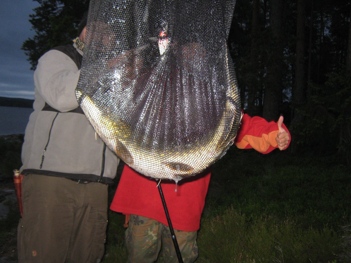 Nach dem sehr schönen und Erlebnisreichen Tag gingen wir zum ZOB und warteten auf unseren Bus in den hohen Norden. Die Busreise startete dann mit ein wenig Verspätung. Gut gelaunt saßen wir fünf Jungs ( zwei Erwachsene und drei Kinder (11-15) Jahre alt im Bus und konnten es kaum glauben, das es endlich soweit war und wir unserem lang ersehntem Abenteuer entgegen fuhren. Die Busfahrt war für unsere Kinder schon ein Abenteuer, alleine wegen den zwei Fährfahrten von Deutschland nach Dänemark und von Dänemark nach Schweden. Die meiste Zeit schliefen wir, weshalb sich die Busfahrt relativ angenehm gestaltete. Es gab genug Pausen um sich zu recken und strecken und die Pausen Zeiten waren auch lange genug um die frische Schwedische naturelle Luft zu Inhalieren. Wenn man in Schweden aus dem Busfenster schaut, kann es sein, daß man mit einem Elch am Straßenrand oder am Waldrand belohnt wird.Wir kamen dann ca. um 9.30 Uhr im Basiscamp an, wo wir dann sehr freundlich empfangen wurden. Da gab es erstmal eine Stärkung in Form von Hot Dog, Kaffee, Wasser und Frucht Ice Tea was unsere Mägen sehr freute. Vor der Weiterfahrt lösten wir noch unsere Fischerei Lizenz im Camp. Nach einer Pause von ca. 45 min. wurden wir dann zum See Stora Bör gefahren. Die Fahrt setzten wir in einem klein Bus fort, welche ca. 45 min. dauerte.