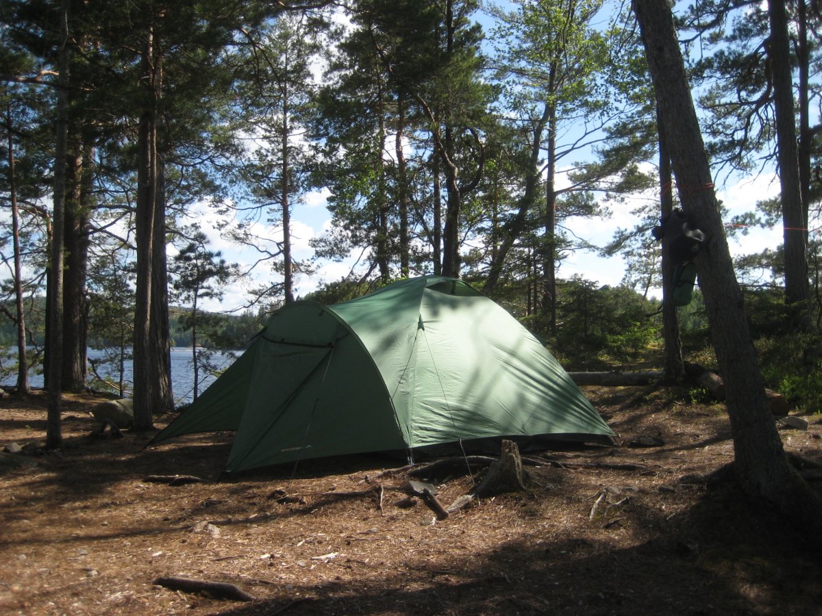Am Donnerstag wollen wir bis an die Stelle fahren, an der der Stora Le in den Foxen übergeht. Am Freitag soll es dann noch in den nördlichen Arm des Stora Le gehen und am Samstag dann zurück nach Lenartsfors. Also schön verteilt 20km, 20km und am Samstag noch die restlichen 12km. In der Karte sind in dem Bereich keine Häuser eingezeichnet und es gibt dort viele Inseln. Daher sollte es kein Problem sein dort einen Übernachtungsplatz zu finden. Was wir aber nicht wussten, war, dass auf der Schwedischen Karte für den Bereich in Norwegen weniger Daten vorhanden sind und auf der Karte daher die Wege und Häuser auf der norwegischen Seite fehlen. Wo wir schöne Übernachtungsplätze erwartet hatten, reiht sich also entlang des Ufers ein Haus an das andere. Und das über Kilometer. So kommen wir auf knapp 35km Wegstrecke, bis wir im nördlichen Arm des Stora Le in einem Abschnitt mit vielen schönen Inseln eine passende Stelle für die Nacht finden.