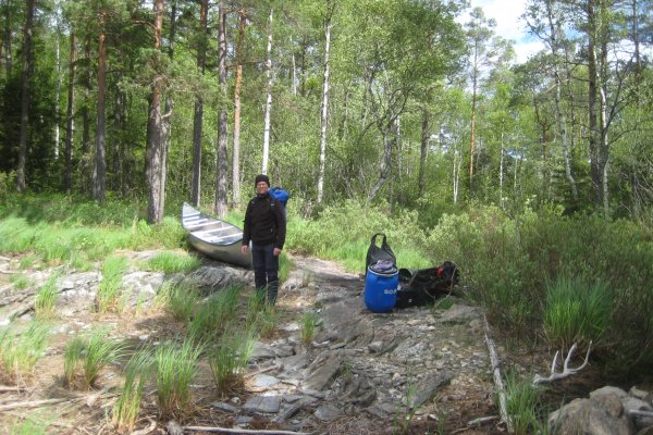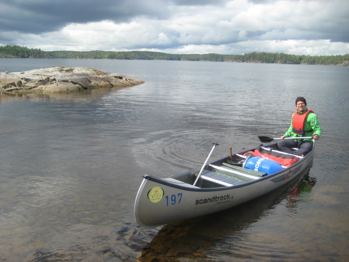 Für den Mittwoch haben wir uns nicht zu viel vorgenommen. Das Wetter ist unbeständig und daher belassen wir es bei einem Trip mit rund 12km. Nach einem leckeren Kaffee und einem Bad im See genießen wir noch eine kurze Fahrt durch die Bucht von Angarna. Von dieser aus soll es auch eine Canutour in Richtung Westen geben. Da wir aber noch kein Kartenmaterial gefunden haben, schippern wir am Ufer entlang und suchen einen Hinweis auf eine Umtragestelle. Leider ohne Erfolg.