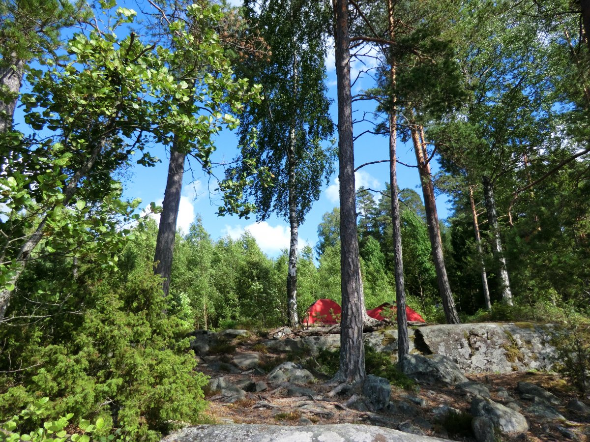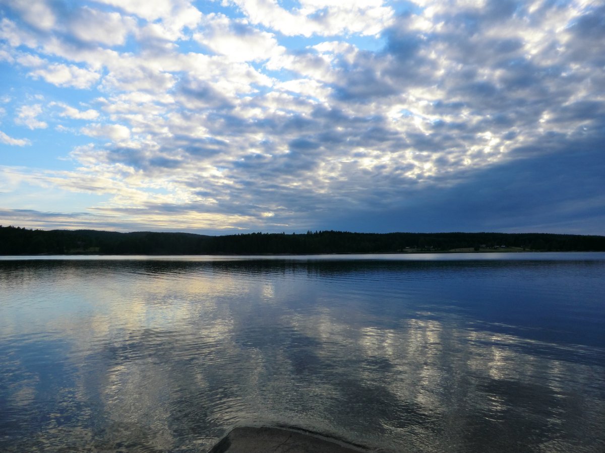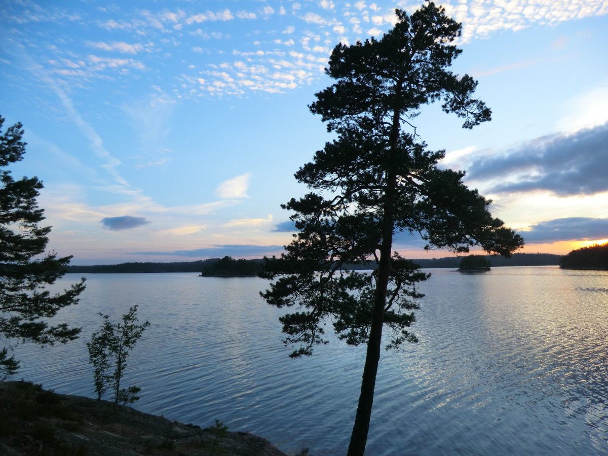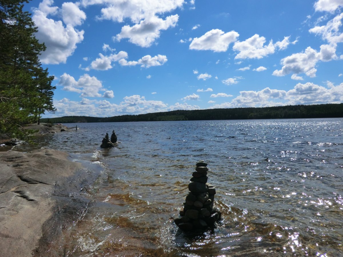 Auch das Kochen am Lagerfeuer, diesmal leider auch häufiger auf dem Gaskocher, kam nicht zu kurz. Von Nudeln mit Tomatensauce über Bratkartoffeln und Tomaten-Gurken-Salat und Pizza bis zu Pfannkuchen war alles dabei. Diesmal gab es aber Apfel-Pfannkuchen. Denn unsere Waldbeersuche war in diesem Jahr nicht so erfolgreich. Unser Highlight war natürlich der von uns mitgebrachte Filterkaffee, den wir uns jeden Morgen beim ausgiebigen Frühstück gönnten. Das Wetter war zwar nicht so sommerlich wie im vergangenen Jahr, aber fast die ganze Woche heiter oder sonnig und auch die geplante Route fuhren wir im Laufe der Woche ab, zu unserem Glück hatten wir jeden Tag Rückenwind.