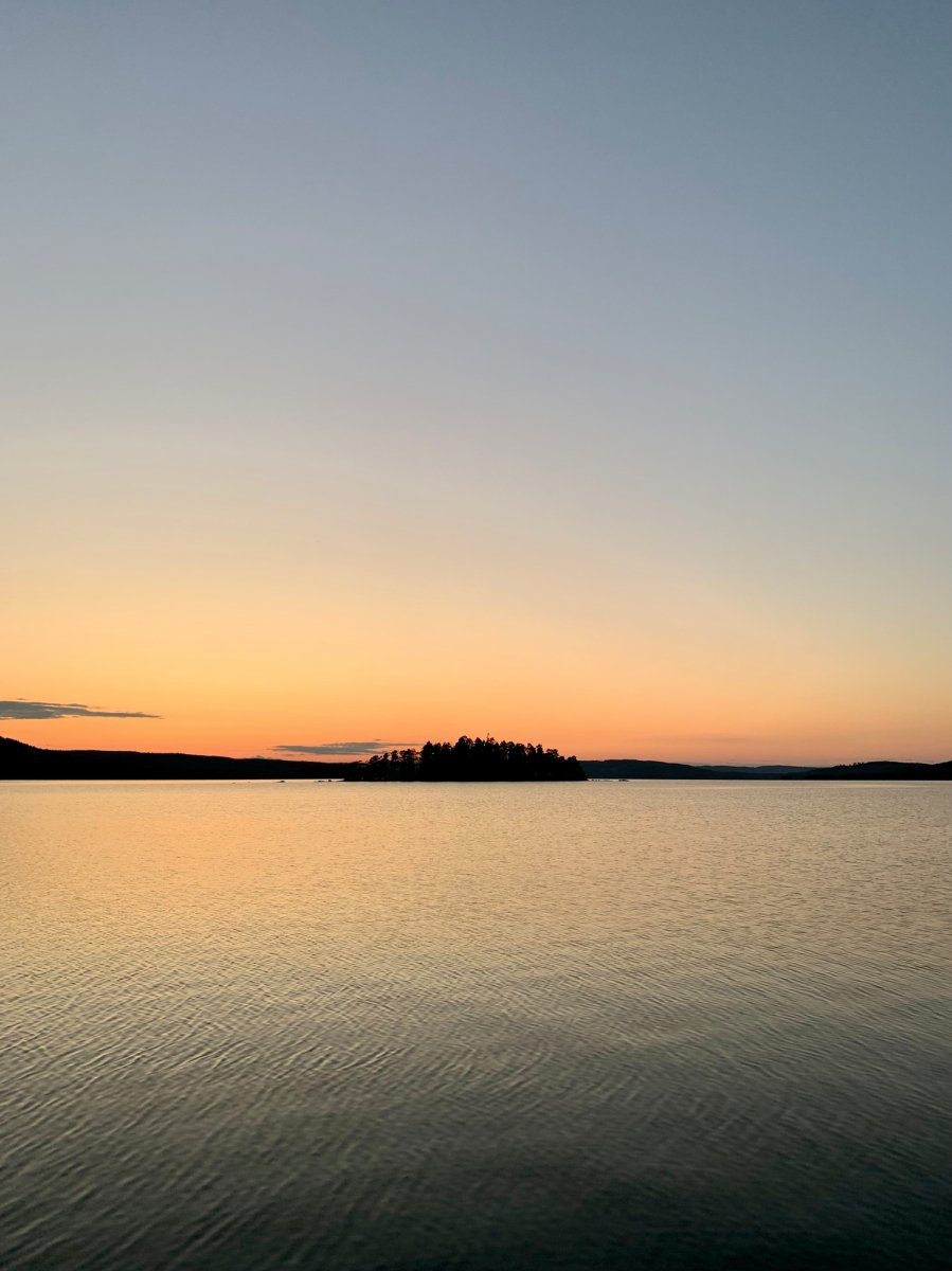 Der erste Morgen begann mir einem traumhaften Blick aufs Wasser, in dem sich der Sonnenaufgang spiegelte. Nach Müsli & Tee von einem Felsen aus, wurde gepackt und es ging direkt weiter zur Umtragestelle Richtung Gränsjön.