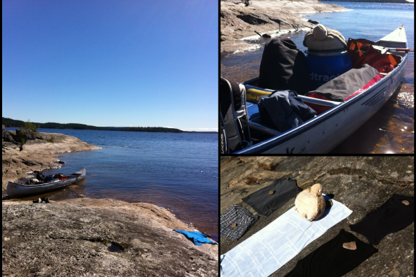 Wir steuerten wieder die Insel mit der Steinküste, an der wir einige Tage zuvor unsere Rast eingelegt hatten, an. Die Vorzüge der Insel hatten aber bereits eine größere Gruppe in ihren Bann gezogen. So entschlossen wir uns Weiter zu paddeln, bis wir auf einer der anderen Vielen Insel ein Nachtlager aufschlugen.