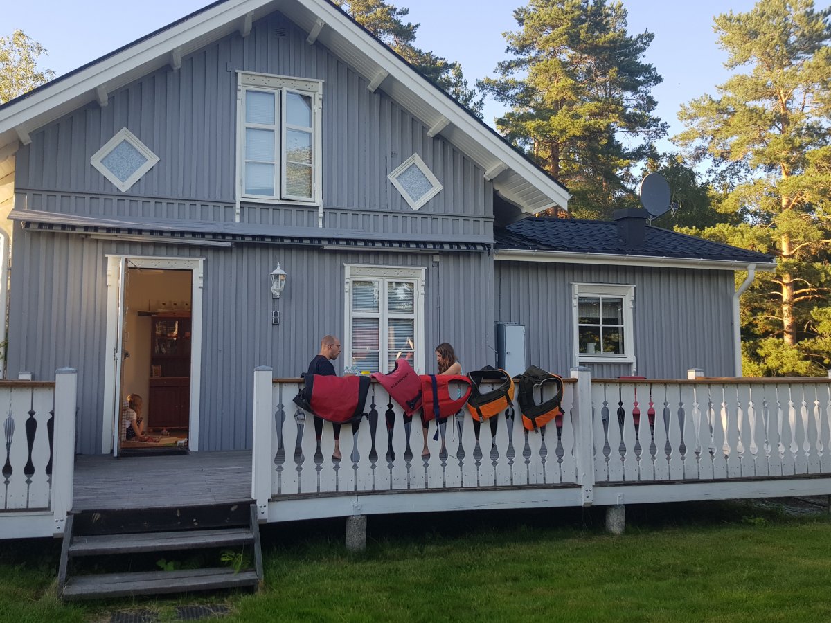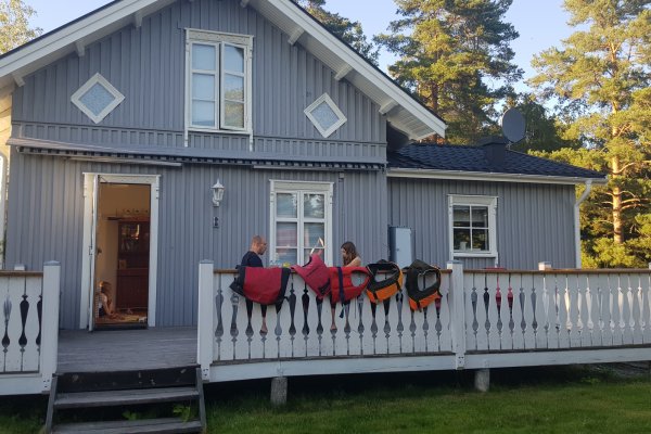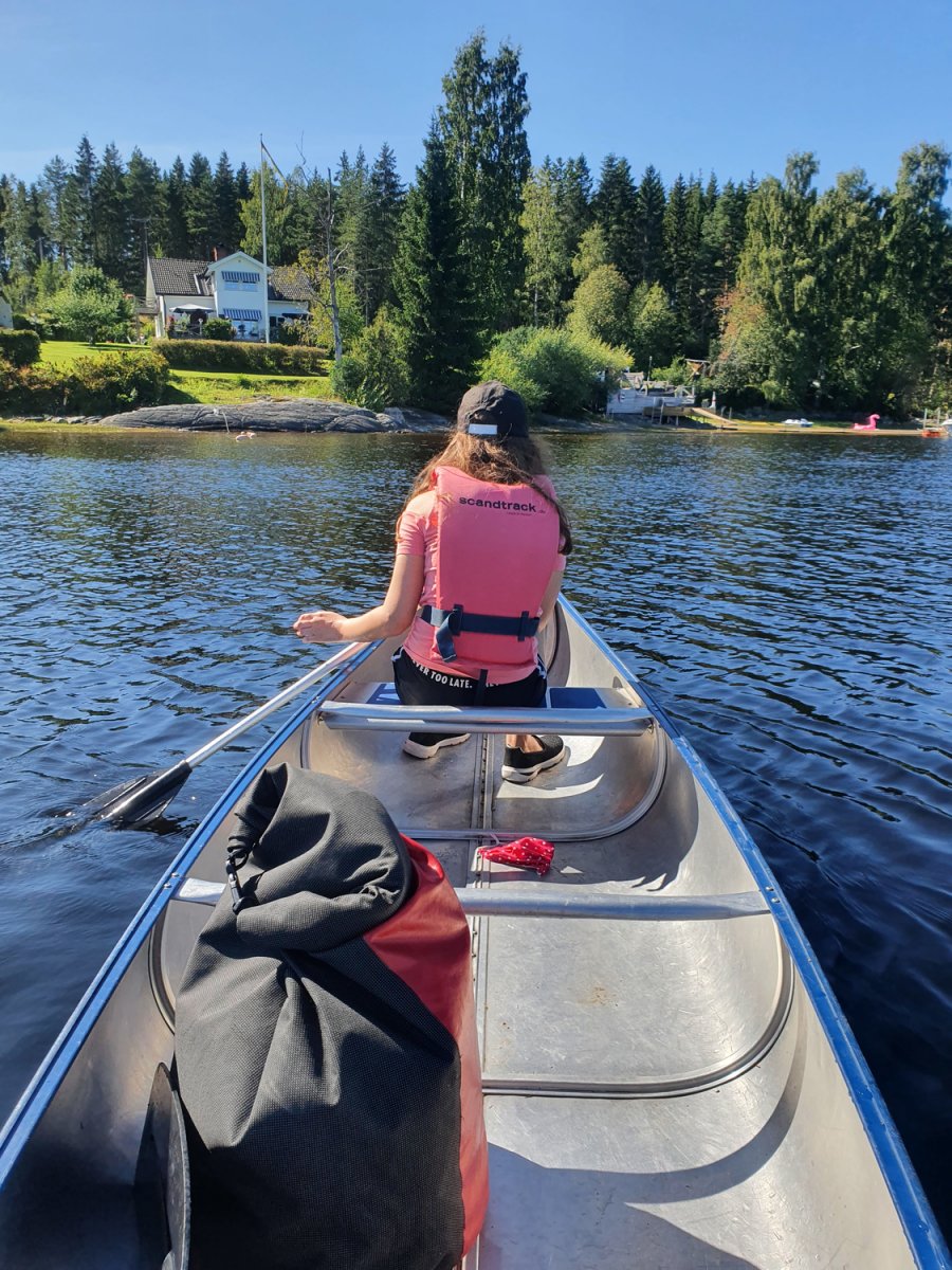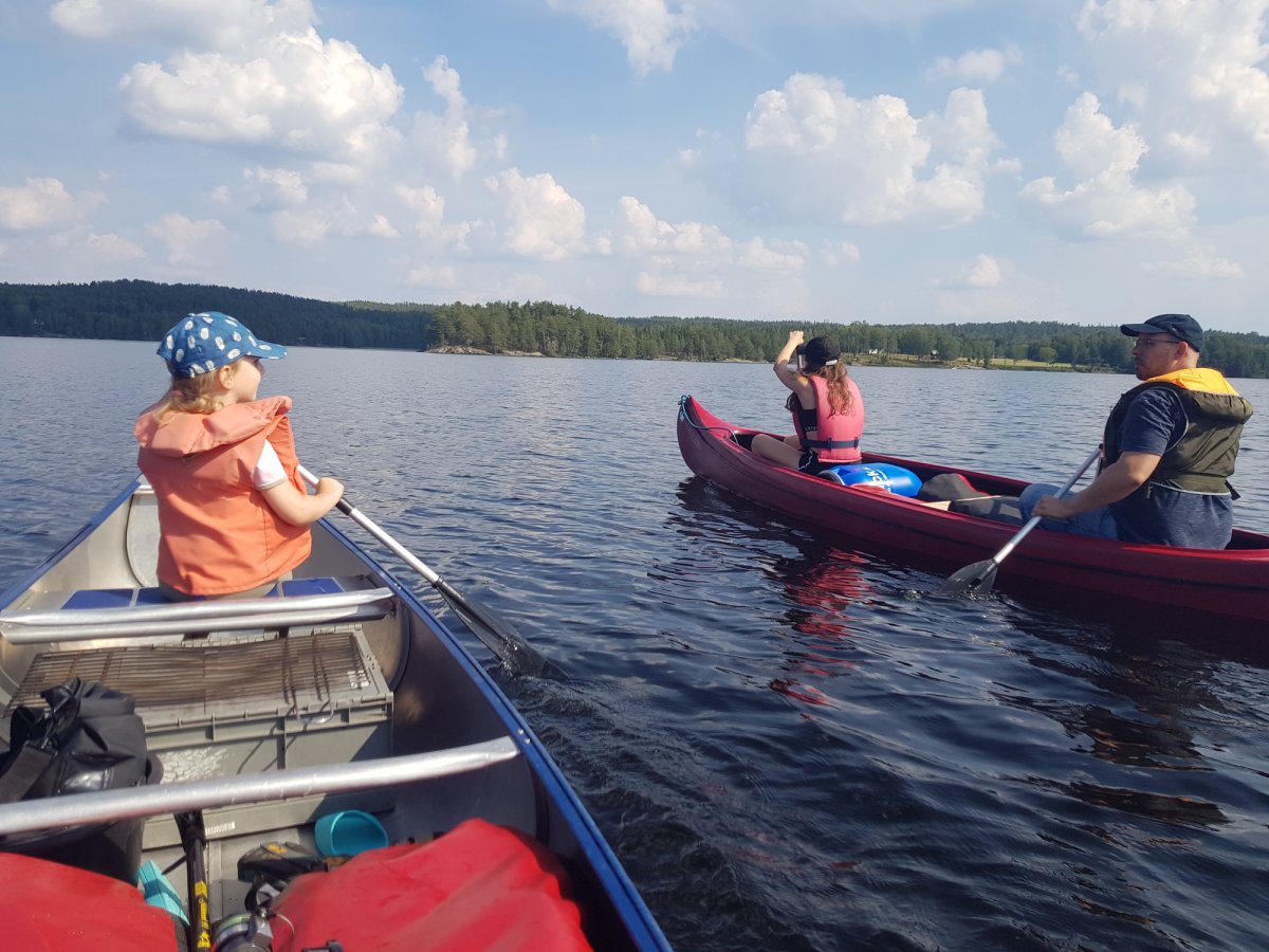 Am 15.08.2020 kamen wir, mein Mann, ich und unsre zwei Kinder (12 und 5 Jahre) nach entspannter Anreise aus Oslo (Anreise mit dem eigenen Pkw und Fähre Kiel-Oslo) nach nur 2 Stunden Fahrt (leider elchlos) im Scandtracklager an. Dort wurden wir sehr herzlich empfangen und nach kurzer Wartezeit von Peter zum Ferienhaus begleitet, der uns auch gleich mit Tipps rund um die Gegend und einer schwedischen Landkarten-App versorgte. Das Haus ist wirklich ein Traum. Tolle Räumlichkeiten, liebevolle Einrichtung, super Atmosphäre, gemütliches Ambiente und einfach zauberhaft. Direkt an einem Waldstück angrenzend liegt das Haus ruhig und idyllisch. Die angrenzende Straße stört überhaupt nicht, da es kaum Verkehr gibt. Auf den Terrassen rund ums Haus hat man einen wunderschönen Ausblick auf das dazugehörige Waldstück. Ein Waldspaziergang ist ein muss! Lecker sind die Beeren (Blau- und Preiselbeeren) die zu dieser Zeit überall zu finden sind. Auch Pilze haben wir gefunden, aber aufgrund fehlender Kenntnisse lieber im Boden lassen Nachdem wir das Haus bezogen hatten, Führte uns ein kleiner Spaziergang direkt zum Hausstrand, der nur knapp 400 Meter entfernt liegt (locker zu Fuß zu erreichen, notfalls auch mit dem Auto zum Befüllen der Kanus). Das Wasser war super. Nicht zu warm und nicht zu kalt. Sehr schön ist der Weg ins Wasser. Sand und nicht gleich tief, sondern man kann gut ein Stückchen hinein laufen. Dieser fand vor allem bei unserer kleinen Tochter großen Anklang und war gar nicht mehr heraus zu bringen. Ein Kanu war bereits vor Ort, das zweite hat mein Mann gemeinsam mit unserer großen Tochter noch vom Camp geholt. Leider war die Schleuse vom Foxen zum See Lelång schon zu und wir mussten an Land übersetzen. Dank einer ausgeliehenen Schlepphilfe von netten Kanufahrern vor Ort konnten wir bequem per Räder übersetzen. Da ca. 1 Km (meist bergauf) Strecke zu bewältigen war waren wir froh über das liebe Hilfsangebot (vielen Dank an dieser Stelle den Helfern!). Also haben wir gelernt sich unbedingt vorher über die Schleusenzeiten zu informieren! :-) Nach kurzer Erfrischung an unsrem Badestrand gings zurück ins Ferienhaus. Dort fertigten wir Pizza aus den leckeren Zutaten von der Scandtracküberlebenstonne an (Rezept im Kochbuch vom Haus Nytomt hinterlassen) und ließen den Anreisetag gemütlich auf der Terrasse bei Traumwetter ausklingen. Tag 2 begann mit viel Ruhe und Vogelgekreische (wir haben leider nicht herausgefunden, welche Vögel das waren, aber wir hörten sie jeden Tag). Tipp: Am frühen Morgen mit einer Tasse Kaffee (oder sonstigem) auf die Sonnenliegen vors Badezimmer setzen und den Sonnenaufgang genießen. Einfach nur schön! An diesem Tag unternahmen wir eine Kanufahrt zur nahegelegenen Insel zu viert in einem Kanu, was sich als sehr wackelig herausstellte, aber zum Glück kenterfrei blieb. Dort schwammen wir ein paar Runden und paddelten dann wieder zurück. Da das Wetter bislang sehr beständig war und es auch weiter bleiben sollte beschlossen wir von Tag 3 auf 4 auf der Insel zu campen. So machten wir uns am dritten Tag zeitig auf und fuhren, diesmal mit 2 Kanus und vollbeladen, los. Leider war unsere Wunschinsel schon belegt und so paddelten wir weiter zur nächsten erspähten Insel. Diese war dann auch schon besiedelt, aber wir durften uns dazu gesellen, da genügend Platz vorhanden war und es außerdem zwei Feuerstellen gab.