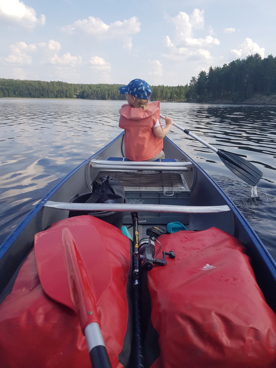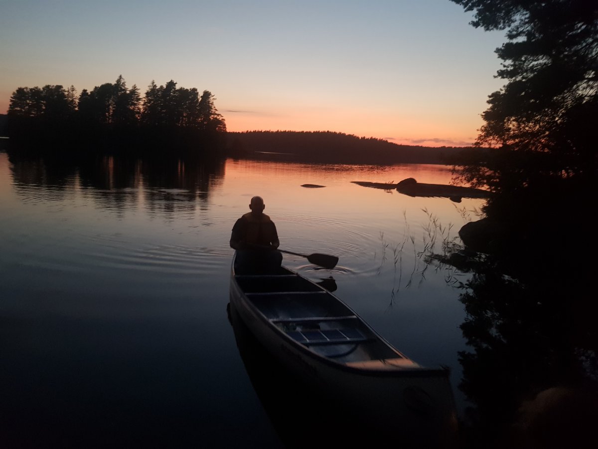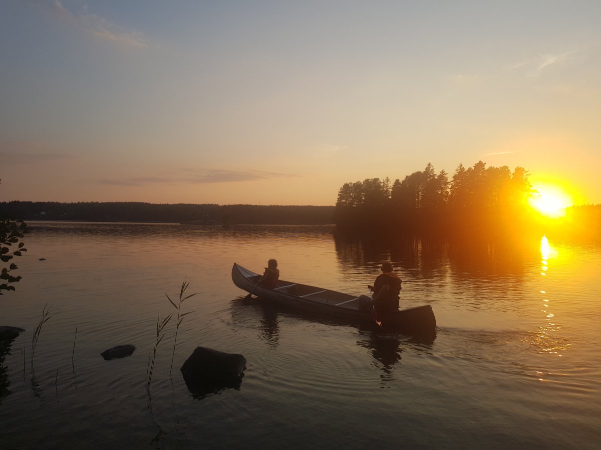 Am 15.08.2020 kamen wir, mein Mann, ich und unsre zwei Kinder (12 und 5 Jahre) nach entspannter Anreise aus Oslo (Anreise mit dem eigenen Pkw und Fähre Kiel-Oslo) nach nur 2 Stunden Fahrt (leider elchlos) im Scandtracklager an. Dort wurden wir sehr herzlich empfangen und nach kurzer Wartezeit von Peter zum Ferienhaus begleitet, der uns auch gleich mit Tipps rund um die Gegend und einer schwedischen Landkarten-App versorgte. Das Haus ist wirklich ein Traum. Tolle Räumlichkeiten, liebevolle Einrichtung, super Atmosphäre, gemütliches Ambiente und einfach zauberhaft. Direkt an einem Waldstück angrenzend liegt das Haus ruhig und idyllisch. Die angrenzende Straße stört überhaupt nicht, da es kaum Verkehr gibt. Auf den Terrassen rund ums Haus hat man einen wunderschönen Ausblick auf das dazugehörige Waldstück. Ein Waldspaziergang ist ein muss! Lecker sind die Beeren (Blau- und Preiselbeeren) die zu dieser Zeit überall zu finden sind. Auch Pilze haben wir gefunden, aber aufgrund fehlender Kenntnisse lieber im Boden lassen Nachdem wir das Haus bezogen hatten, Führte uns ein kleiner Spaziergang direkt zum Hausstrand, der nur knapp 400 Meter entfernt liegt (locker zu Fuß zu erreichen, notfalls auch mit dem Auto zum Befüllen der Kanus). Das Wasser war super. Nicht zu warm und nicht zu kalt. Sehr schön ist der Weg ins Wasser. Sand und nicht gleich tief, sondern man kann gut ein Stückchen hinein laufen. Dieser fand vor allem bei unserer kleinen Tochter großen Anklang und war gar nicht mehr heraus zu bringen. Ein Kanu war bereits vor Ort, das zweite hat mein Mann gemeinsam mit unserer großen Tochter noch vom Camp geholt. Leider war die Schleuse vom Foxen zum See Lelång schon zu und wir mussten an Land übersetzen. Dank einer ausgeliehenen Schlepphilfe von netten Kanufahrern vor Ort konnten wir bequem per Räder übersetzen. Da ca. 1 Km (meist bergauf) Strecke zu bewältigen war waren wir froh über das liebe Hilfsangebot (vielen Dank an dieser Stelle den Helfern!). Also haben wir gelernt sich unbedingt vorher über die Schleusenzeiten zu informieren! :-) Nach kurzer Erfrischung an unsrem Badestrand gings zurück ins Ferienhaus. Dort fertigten wir Pizza aus den leckeren Zutaten von der Scandtracküberlebenstonne an (Rezept im Kochbuch vom Haus Nytomt hinterlassen) und ließen den Anreisetag gemütlich auf der Terrasse bei Traumwetter ausklingen. Tag 2 begann mit viel Ruhe und Vogelgekreische (wir haben leider nicht herausgefunden, welche Vögel das waren, aber wir hörten sie jeden Tag). Tipp: Am frühen Morgen mit einer Tasse Kaffee (oder sonstigem) auf die Sonnenliegen vors Badezimmer setzen und den Sonnenaufgang genießen. Einfach nur schön! An diesem Tag unternahmen wir eine Kanufahrt zur nahegelegenen Insel zu viert in einem Kanu, was sich als sehr wackelig herausstellte, aber zum Glück kenterfrei blieb. Dort schwammen wir ein paar Runden und paddelten dann wieder zurück. Da das Wetter bislang sehr beständig war und es auch weiter bleiben sollte beschlossen wir von Tag 3 auf 4 auf der Insel zu campen. So machten wir uns am dritten Tag zeitig auf und fuhren, diesmal mit 2 Kanus und vollbeladen, los. Leider war unsere Wunschinsel schon belegt und so paddelten wir weiter zur nächsten erspähten Insel. Diese war dann auch schon besiedelt, aber wir durften uns dazu gesellen, da genügend Platz vorhanden war und es außerdem zwei Feuerstellen gab.