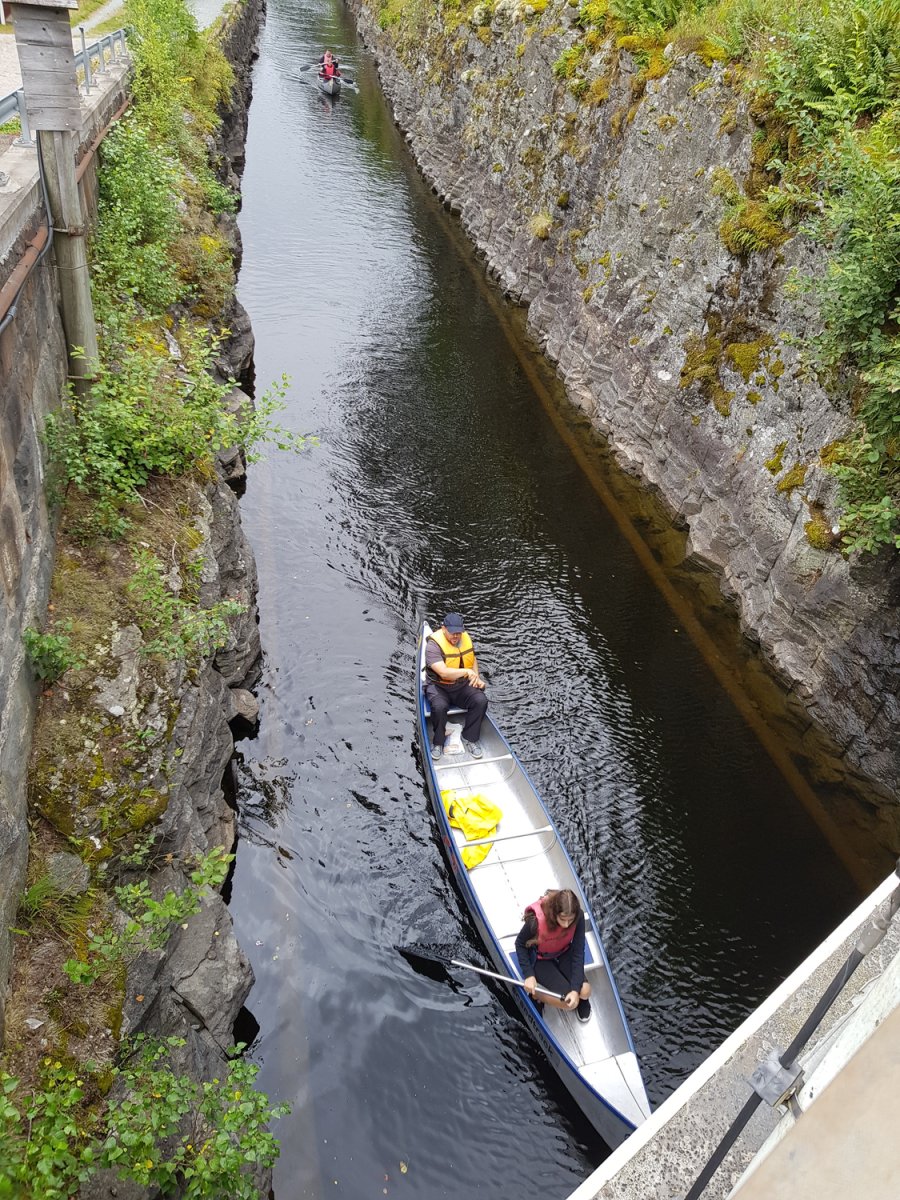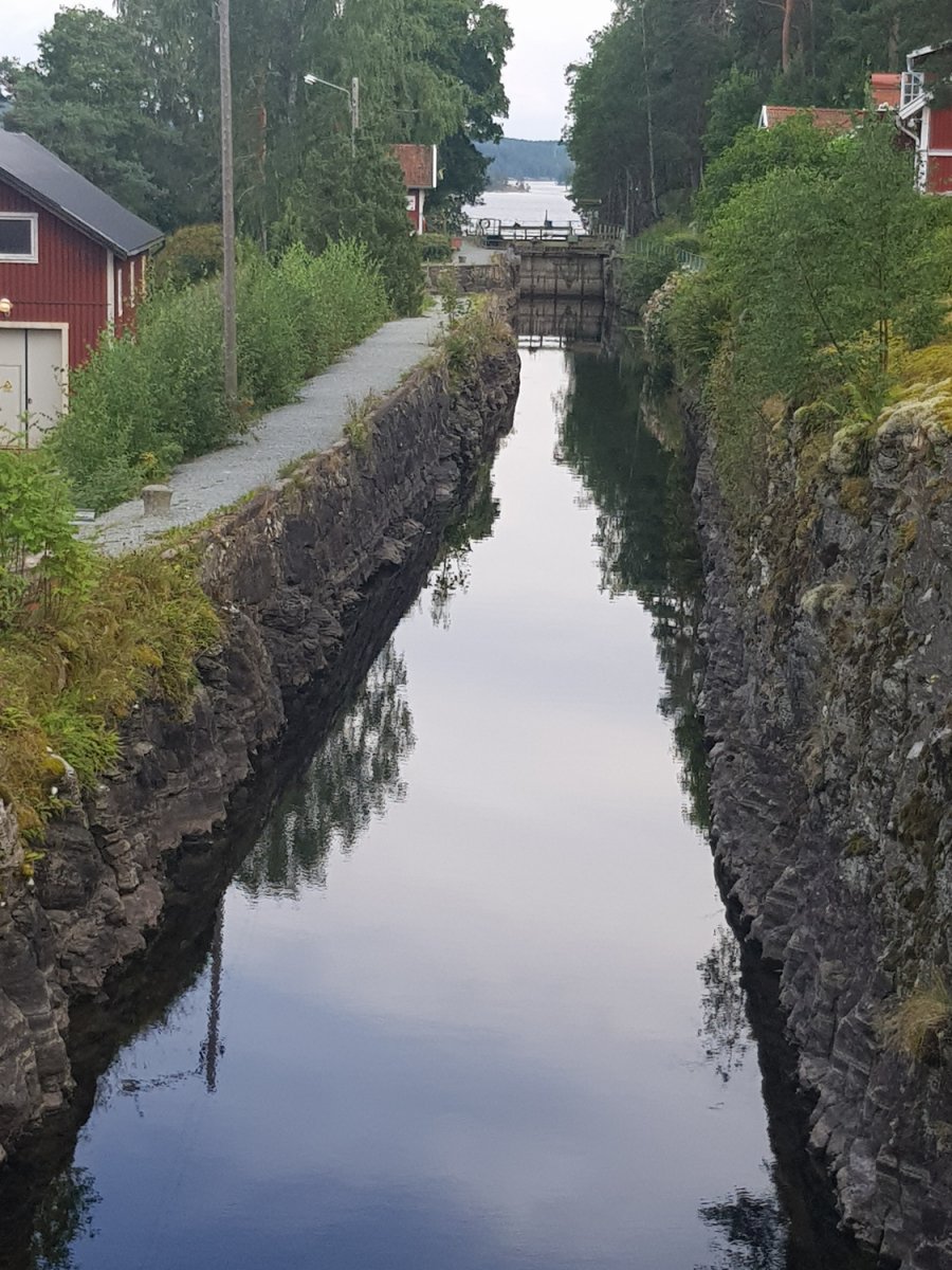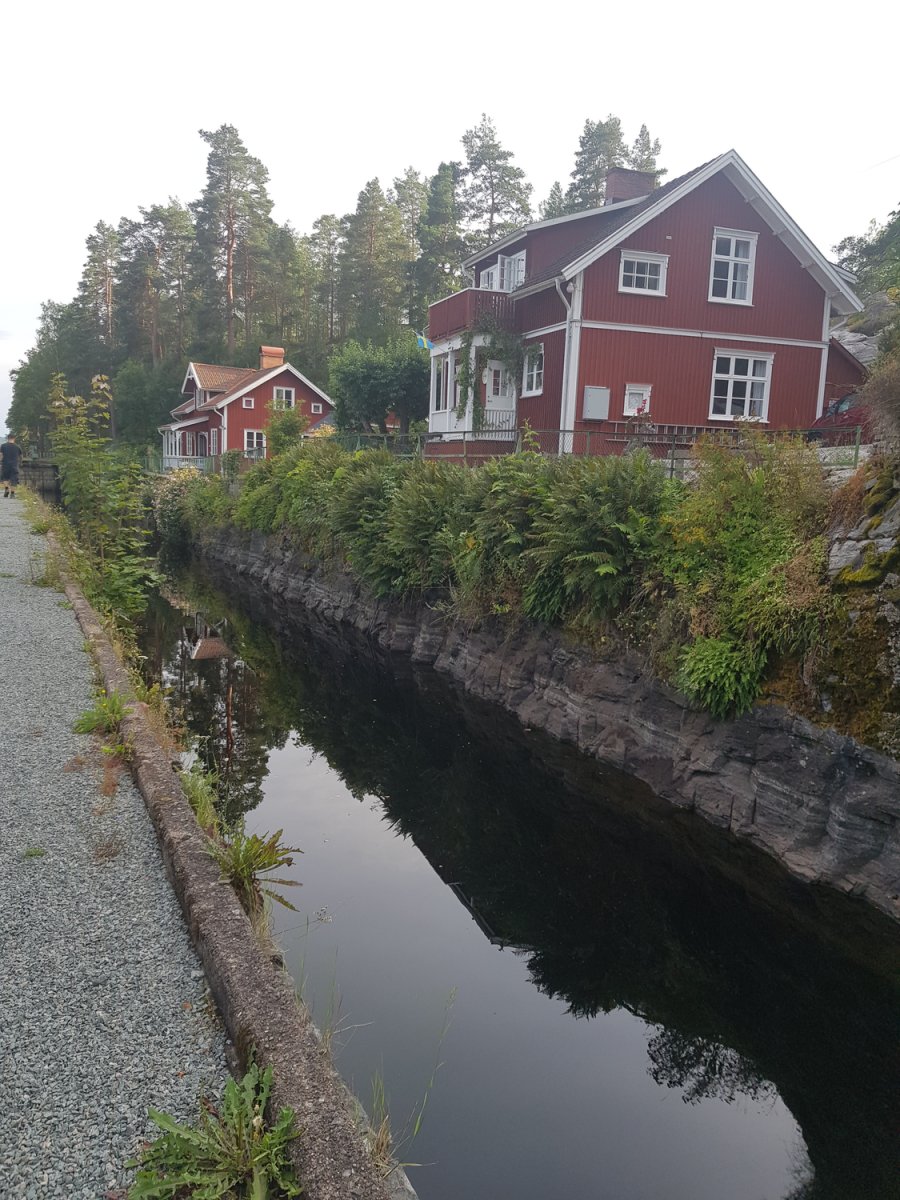 Surströmming gab es dann zum Mittagessen. Der Verzehr dieses besonderem Gerichts (schwedischer Stinkefisch) hat in Schweden Tradition und gehört zum Spätsommer einfach dazu. Und ganz ehrlich, das muss man mal erlebt haben! Aber bitte unbedingt Schnaps dazu besorgen und Zubereitungshinweise beachten! Wir haben überlebt und konnten somit am späten Nachmittag eine Wanderung zum "Geisterhaus Bråten" machen. Wir starteten beim Scandtracklager und gingen durch ein wunderschönes Waldstück voller Beeren und Pilzen, entdeckten so manches kleine Getier (leider immer noch kein Elch gesichtet) bis wir nach ca. 30 Minuten zum Geisterhaus kamen. Netter Ausflug und interessant zum Angucken. Das Wetter hat auch gehalten und so kamen wir trocken und vor dem großen Regen wieder im Haus Nytomt an. Wir schafften es sogar noch ein Lagerfeuer zu machen und Marshmallows (unbedingt mitnehmen) zu grillen. Tag sieben war sehr regnerisch und so nutzen wir die Zeit zum Packen. Am frühen Nachmittag brachten wir das Kanu - und diesmal sogar zu Wasser - über die Schleuse (ein tolles Erlebnis) zurück zum Camp und ließen den letzten Tag noch gemütlich im Haus ausklingen. Am achten und somit Abreisetag verbrachten wir die letzten Stunden mit Putzen und übergaben das Häuschen schweren Herzens wieder an Peter. Mit dem Auto gings dann noch auf einen Kaffee und die ein oder andere "Kanelbulle" zur lieben und äußerst gastfreundlichen Gitta (Peters Frau) und ihrem wunderschönen Heim. Dort durften wir noch ihre Werkstatt besuchen, dem lieben Bandit eine Karotte geben und den Rasenmäher (leider haben wir den Namen vergessen, "Robi"?) etwas aus der ein oder anderen misslichen Lage befreien. Anschließend gings gestärkt und mit vielen tollen Erlebnissen Richtung Heimat. Wir ließen uns dann per Fähre von Göteborg nach Kiel schiffen und fuhren den Rest wieder mit eigenem PKW nach Hause.