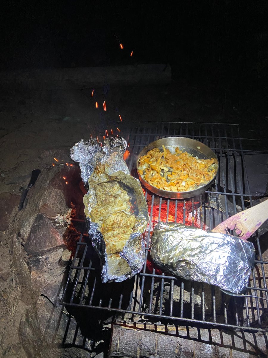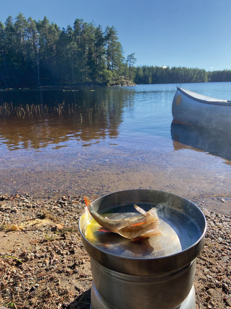 Ein Höhepunkt war der Fang eines großen Hechts. Wir haben lange überlegt, ob wir ihn wirklich zubereiten sollen. Schließlich entschieden wir uns für das Abenteuer. Wir filetierten den Fisch, den wir liebevoll Hecht Hector tauften, brieten ihn über dem Feuer und kombinierten ihn mit selbst gesammelten Pfifferlingen. Ein Mahl, das zugleich lehrreich und köstlich war – und uns zeigte, wie nah man hier mit der Natur lebt. Jeden Morgen sammelten wir Heidelbeeren für unser Porridge – das Highlight in unserem morgendlichen Frühstück oder zu leckeren Pancakes.