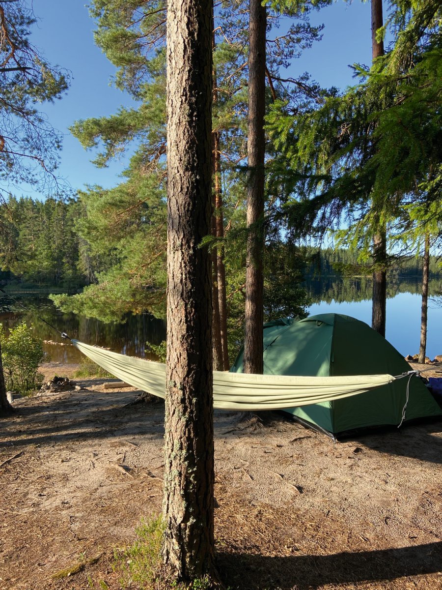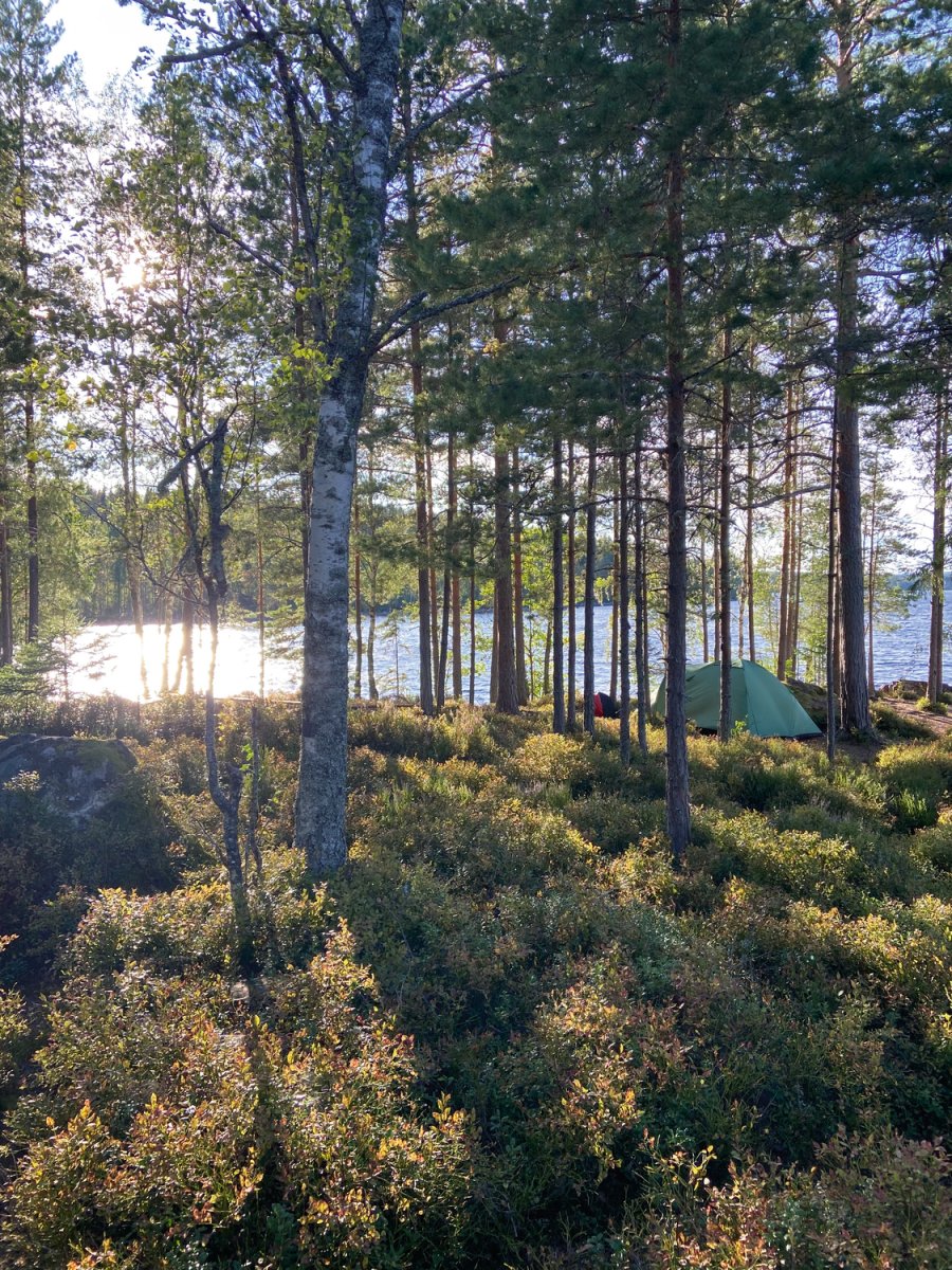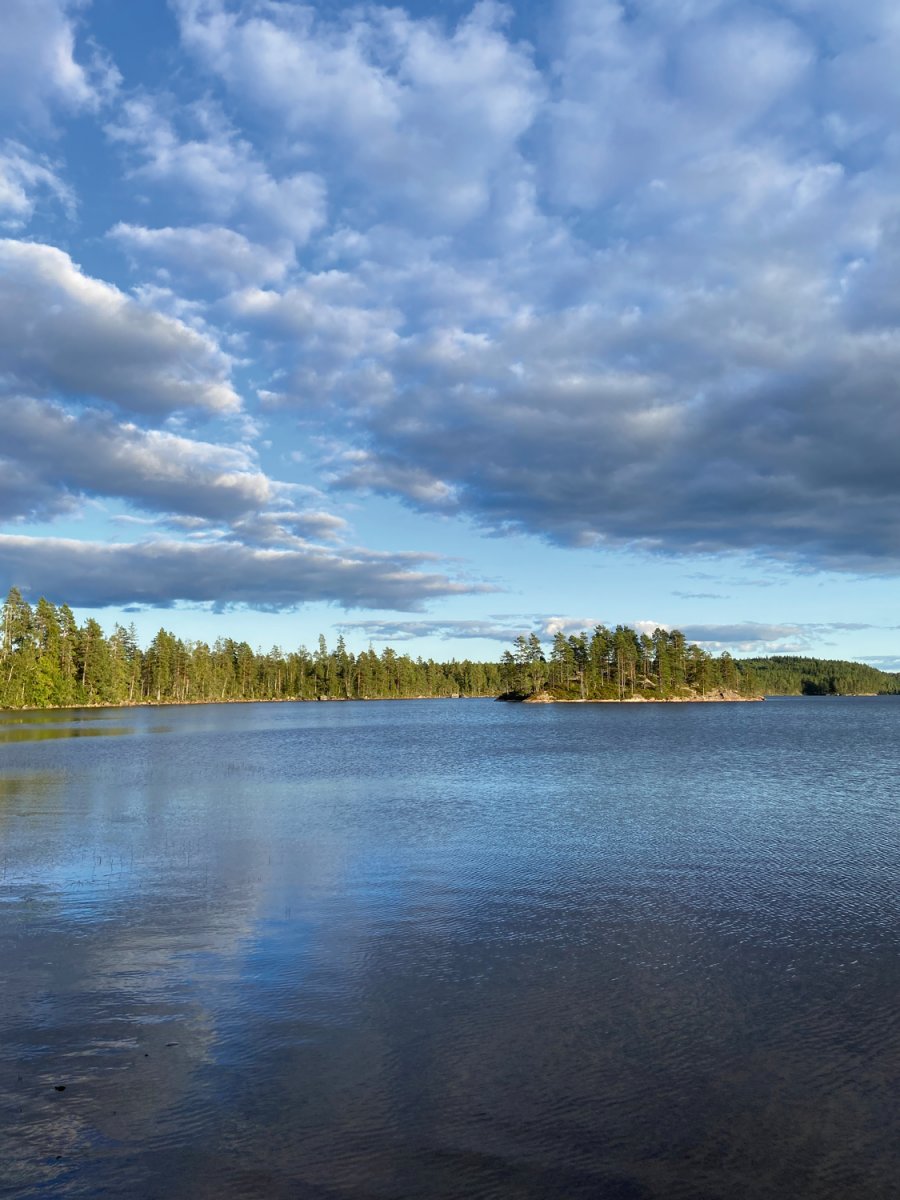 Unser Startpunkt war der große See Övre Gla. Der Wind türmte Wellen auf, und für einen Moment hatte ich das Gefühl, auf dem Meer zu sein. Am Abend wurden wir dafür belohnt: ein Sonnenuntergang wie gemalt, während die Angel ausgeworfen wurde – unser erster Abend im Rhythmus der Natur. Es fühlte sich an, als ob die Welt für einen Augenblick stillstand, nur wir und das goldene Licht über dem Wasser.