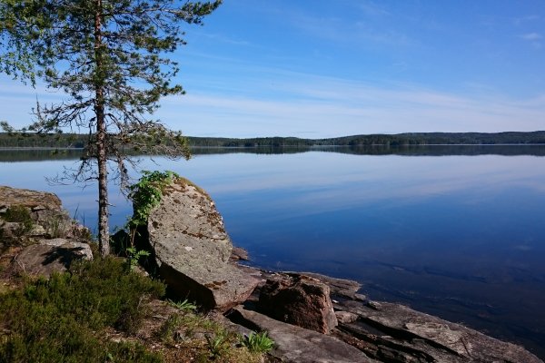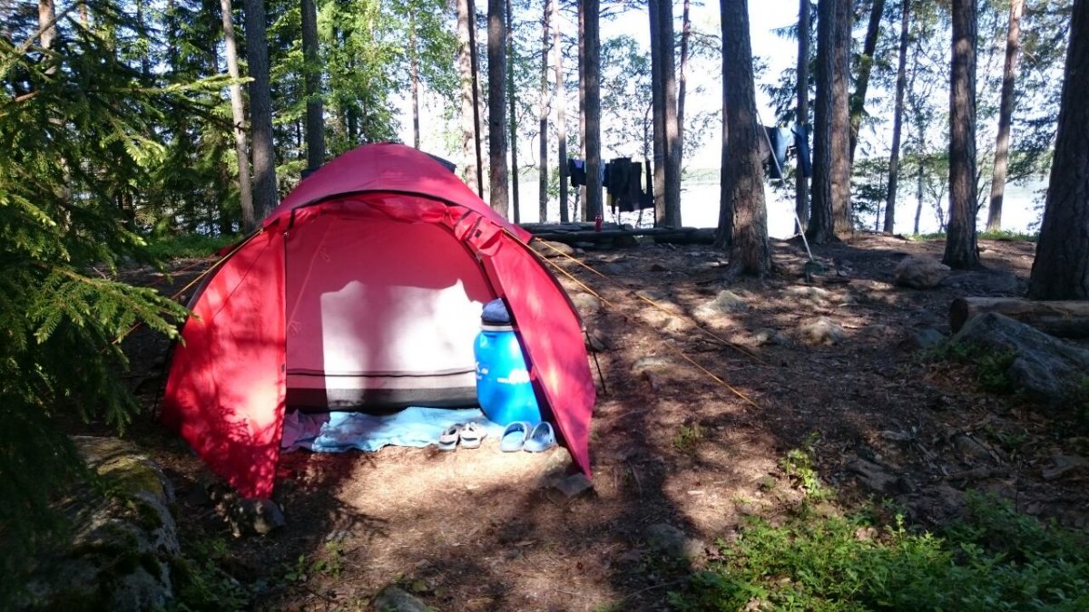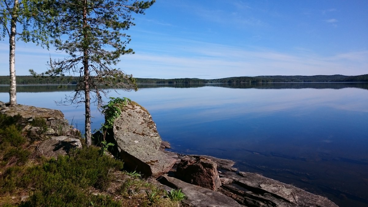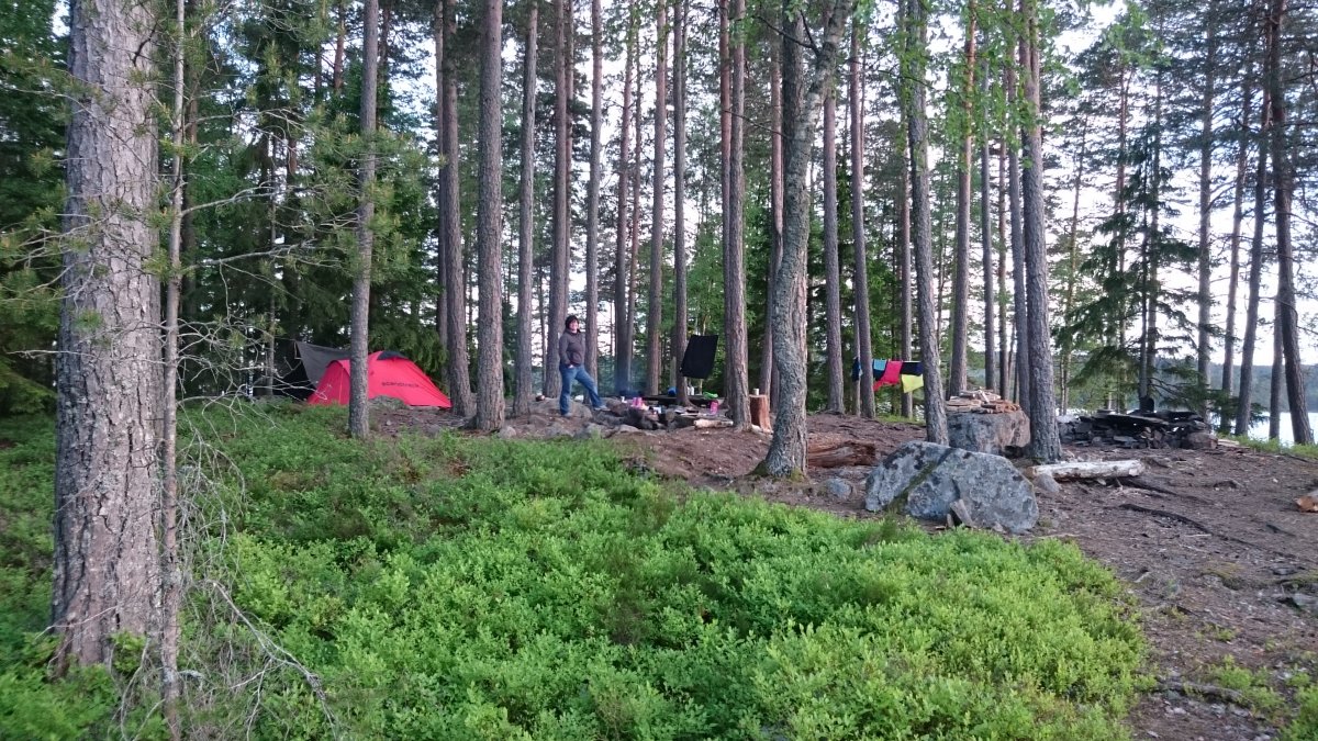 Unsere Insel lag mitten auf dem Stora Bör. Wir wurden darauf hingewiesen, dass es noch starken Wind gebe und wir die Insel bis Montag besser nicht verlassen sollten. Hm, wir zwei Frauen bei Wind und Wellen mitten auf dem See, da hat uns das Team Scandtrack ja was zugetraut. Dass wir Kanuerfahren sind, hatte ich bei der Buchung nicht angegeben.