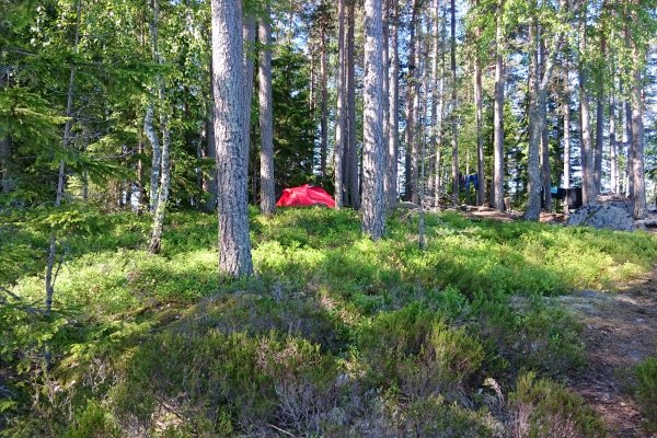 Oft mussten wir einen weiten Bogen fahren um letztendlich dort anzukommen, wo wir hin wollten. Dazu kommt noch, dass es im Stora Bör viele Felsen oder Steine gibt, welche wohl einmal Inseln werden wollten, teilweise knapp über oder unter Wasser. Meine größte Sorge war, dass wir auf einen von diesen Felsen stoßen oder gegenschlagen, so haben wir uns ausgemacht die Augen offen zu halten und uns unter zur Hilfenahme der Uhrzeit auf Hindernisse aufmerksam zu machen; z.B. auf 11 Uhr ein Stein. Das klappte sehr gut. Am ersten Paddeltag peilten wir den Campingplatz an. Dort angekommen, freuten wir uns erst einmal geradeaus und aufrecht ein Stückweit gehen zu können. Nach einem Tag Insel waren wir das gar nicht mehr gewöhnt. Auf Bockön 1 ist man nur am Stolpern, Bücken, Füße anheben – das Ganze kreuz und quer und hoch und runter.