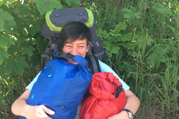 Richtige Entscheidung, denn nach einem ausgedehntem Frühstück und dem Zusammenräumen aller Sachen und ins Boot verfrachten, wären wir wohl vor 14 Uhr nie los gekommen. Ausschlafen wollten wir auch, hatten ja schließlich Urlaub. Unserem Mangel an Outdoor-Erfahrung hatten wir unser Übermaß an Gepäck zu verdanken. Wir packten alles ein, was man nur annähernd gebrauchen könnte. So war der Weg zum Abfahrtsort unseres Busses schon beschwerlich. Bei jeweils 20 kg Kraxen, dazu Schlafsäcke, Isomatten und reichliche Verpflegungsbeutel für die lange Busreise blieb uns nach nur 50 m Fußmarsch förmlich die Luft weg.
