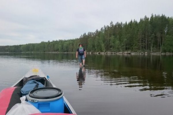 Boot startklar, Kraxen, Schlafsäcke, Isomatten, die wahnsinns Ausrüstung - das alles passte unglaublicher Weise in das Kanu und sogar wir fanden auch noch Platz darin. Los ging´s! Dank Rückenwind meisterten wir die ca. 4km zu unserer Insel recht flott.