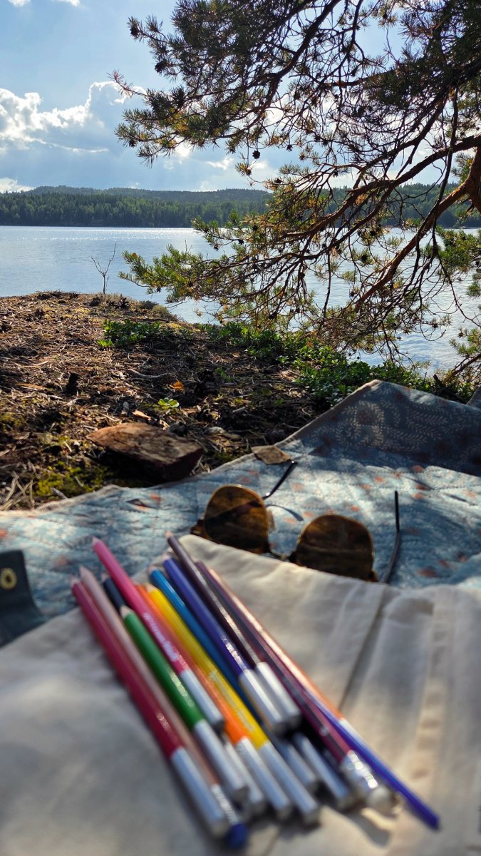 Ich bin eigentlich gerne draußen, liebe das Wandern und fahre in meiner Freizeit auch Kajak. Aber das hier war meine erste richtige Outdoorreise. So mit Kochen über dem Feuer, Geschirrspülen am Seeufer und Tarp statt Terrasse. Und es war herrlich! Selbst das Abwaschen hatte etwas Meditatives. Ich habe die Zeit richtig genossen, mich in unserer improvisierten Outdoorküche auszuprobieren – inklusive Pizza über dem Lagerfeuer und selbstgemachtem Chutney zum Stockbrot. Und: Ich hatte wieder Lust zu malen! Das erste Mal seit Jahren habe ich die Aquarellstifte in die Hand genommen. So habe ich die Umgebung nicht nur gesehen, sondern wirklich wahrgenommen.