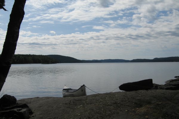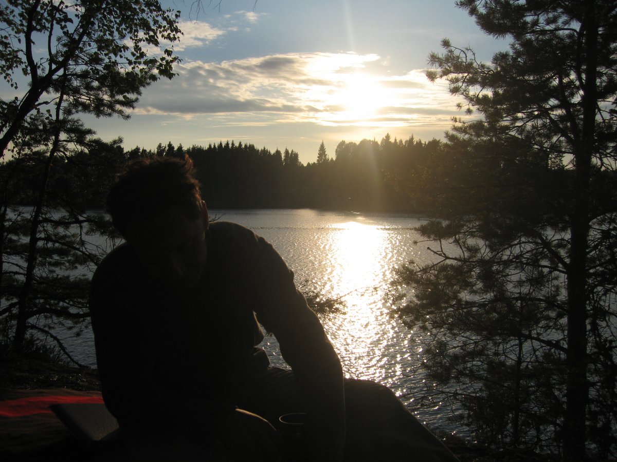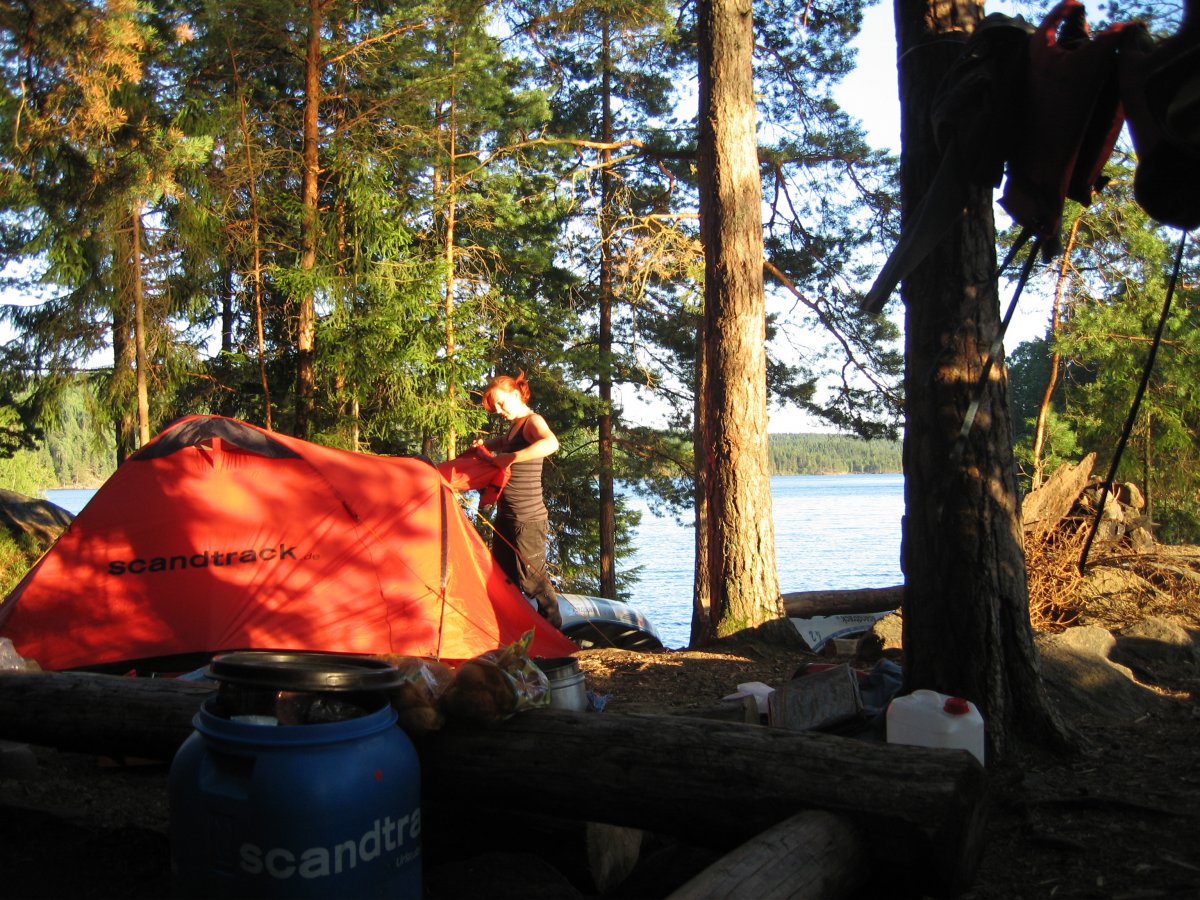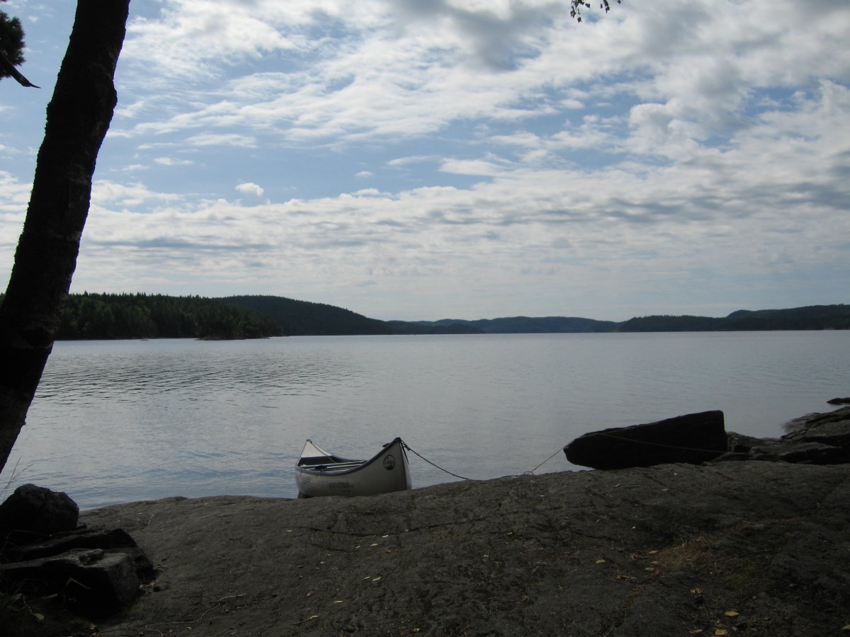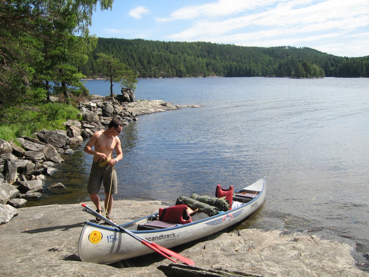 Nachdem wir das Kanu entladen, unser neues Lager begutachtet und das Zelt errichtet hatten, setzten wir uns ans Wasser und kamen endlich richtig in Nordmarken an.