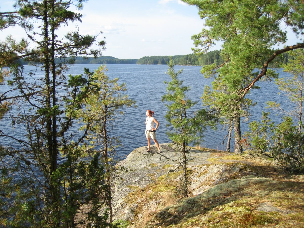 Kein Zivilisationsgeräusch! Nur das Zwitschern der Vögelchen, das Rascheln der Birken und Kiefern im Wind und das leise Plätschern des Wassers an den felsigen Ufern. Ruhe.