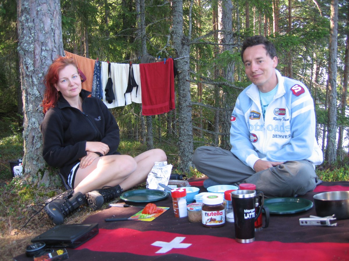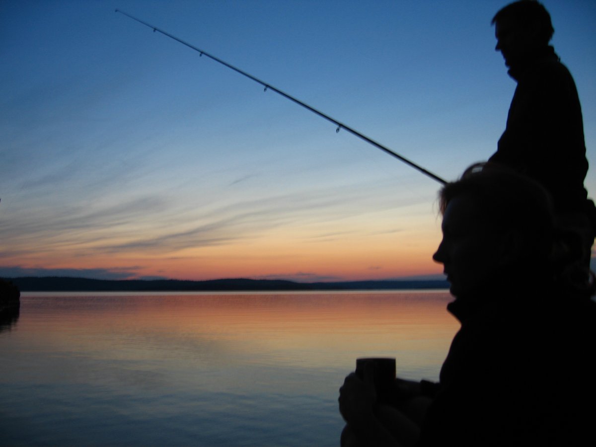 Sogar das obligatorische Angeln wurde täglich, wenn auch recht erfolglos, Bestandteil der Abendgestaltung. (Übrigens steigen Blasen auf, wenn Fische dich auslachen. Da bin ich mir ziemlich sicher.) Trotzdem bekamen wir zum Schluss doch noch unseren Fisch zum Abendessen (und dabei meine ich nicht nur die Konserve aus der Proviantbox). Ein älteres schwedisches Paar hatte unsere glücklosen Versuche gesehen und schenkte uns kurzerhand ihren, vor unseren Augen aus dem Wasser gezogenen Fang.