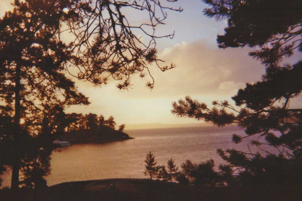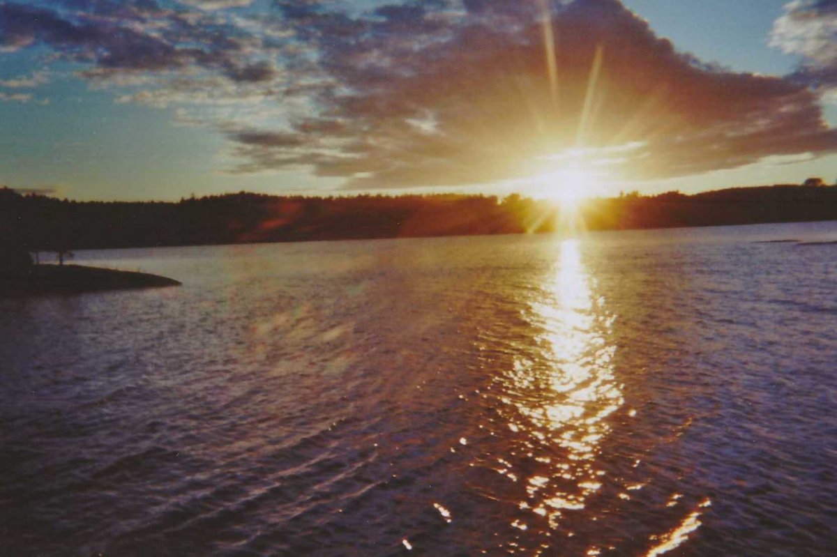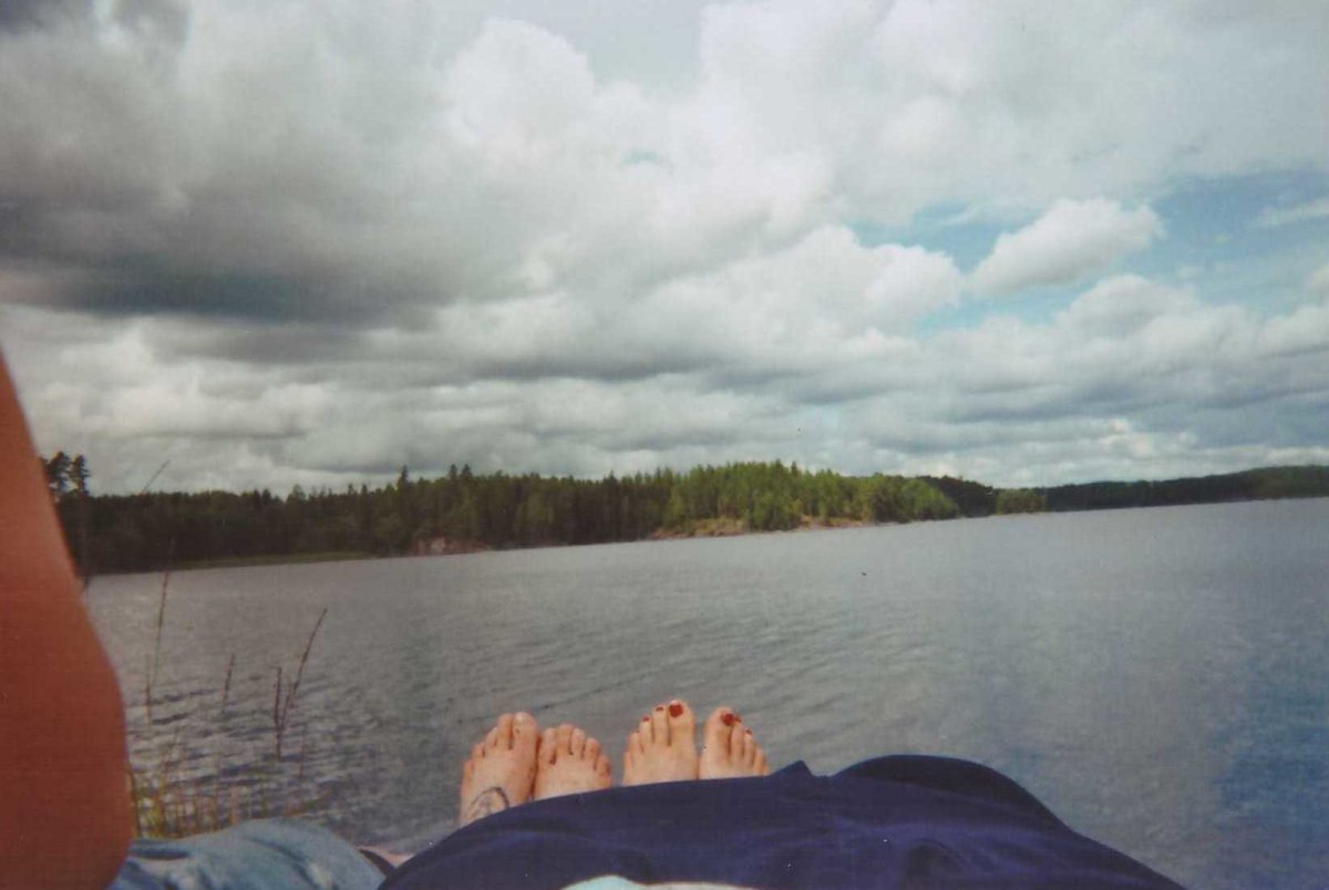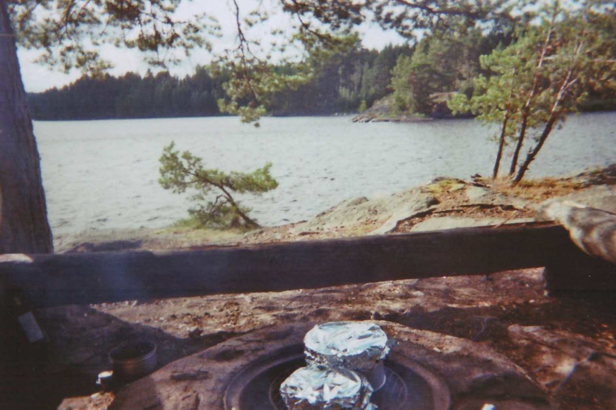 Der Foxen. Ganz schön großer See. Größer als erwartet. Der Wind pustet uns mit aller Kraft ins Gesicht. Natürlich fahren wir gegen die Strömung, ziemlich anstrengend. Wir landen auf einer Insel. Es sind schon andere Menschen da. Wir finden trotzdem eine Lagerstelle nur für uns. Kleiner Haken. Diese ist genau auf der anderen Seite der Insel. Wir haben die Wahl zwischen weiter gegen die Strömung paddeln oder unseren Kram tragen. Letzteres hat gewonnen. Tollpatschig wie wir sind, wurden wir dabei allerdings bis zum Bauch nass. Danke an den Wind, der so schnell unsere Klamotten trocken geföhnt hat. Wir bauen das Zelt auf und der Sprituskocher wird ausprobiert. Es gibt Kartoffeln. Und ein Becherchen Wein. Lecker! Wir schauen der Sonne entgegen. Sie sagt Gute Nacht und wir auch.