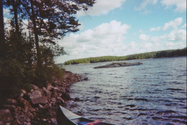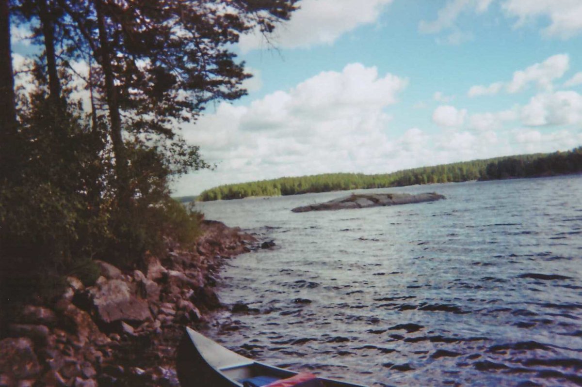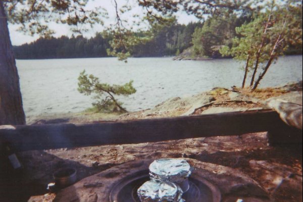 Der morgendliche Schrei der Möwen weckt uns. Aufstehen. Uns ist es langsam zu windig auf dem Foxen. Wir versuchen es mal mit dem kleinen Fluss im Nordosten. Hier ist es nicht ganz so stürmisch. Trotzdem etwas Rückenwind. Wir lassen uns treiben. Links und rechts gibt es viel zu entdecken. Bäume, Steine und zwischendurch mal einen Ameisenhaufen. Aber keinen Elch. Wir landen wieder auf einer Insel. Wieder zieht uns ein rauer Wind um die Ohren. Wir spannen eine Plane als Windfang. Sieht nicht schön aus, aber hält. Wir haben zum ersten Mal eine richtige Feuerstelle, mit Bänken, Feuerholz und ein Klo gibt’s hier auch.