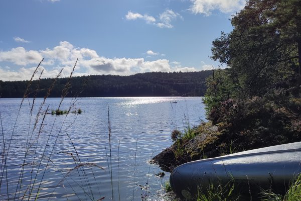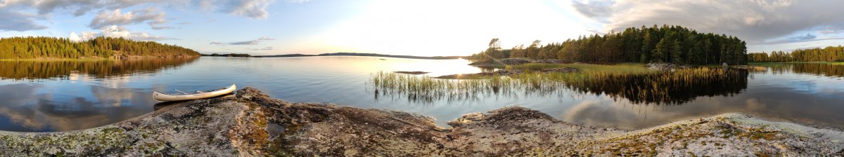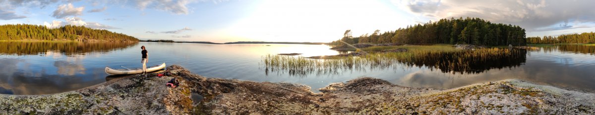 Unsere Sehnsucht nach dem Wasser wurde dank einer blitzsauberen Ausrüstung rasch befriedigt. Nach einer kurzen Einführung in das Kanufahren und dem Beladen des Bootes befanden wir uns gegen Mittag, etwa zwei Stunden nach unserer Ankunft, auf eigene Faust in der wunderbaren schwedischen Wildnis. Völlig planlos und randvoll mit Tatendrang paddelten wir die ersten Kilometer. Nach zwei Stunden, aus reiner Neugier an einer passend aussehenden Insel in der Mitte des Sees, steuerten wir darauf zu.