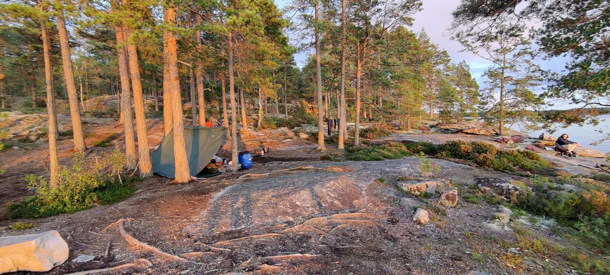 Am vorletzten Tag unserer aufregenden Reise suchten wir erneut einen Ort auf, den wir bereits am Vortag entdeckt hatten, um unsere letzten vollen Tag in der schwedischen Wildnis zu verbringen. Dieser Ort erwies sich als einer der schönsten, den wir während unserer gesamten Reise gefunden hatten. Nach unserer Ankunft richteten wir unser Zelt und unsere Hängematte ein, was wohl das letzte Mal in dieser idyllischen Umgebung war.
