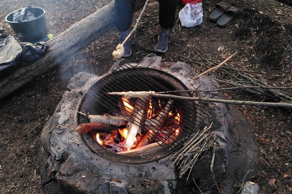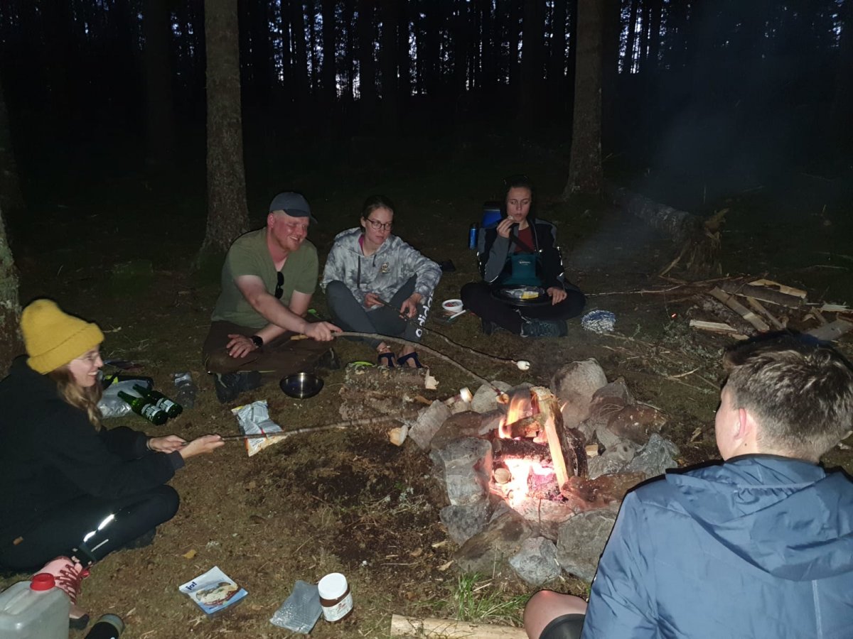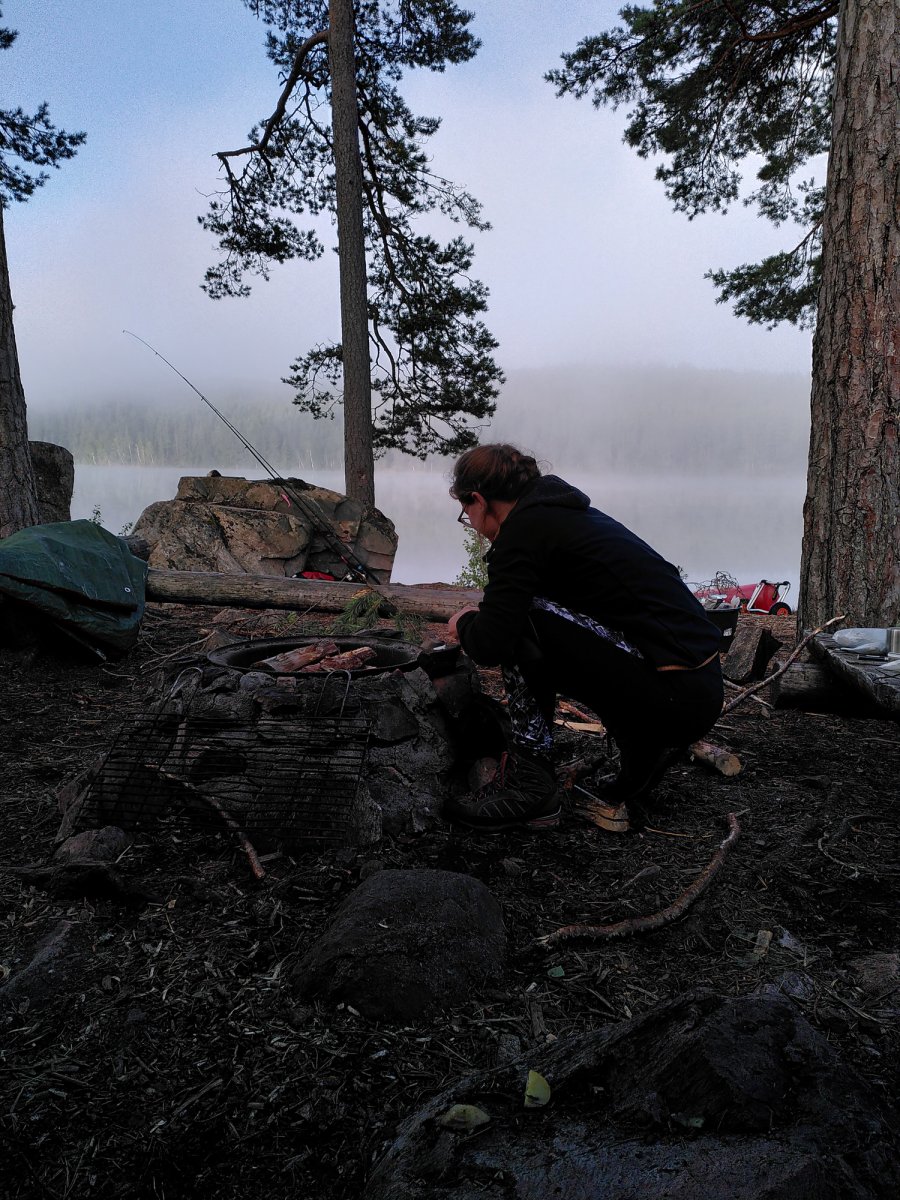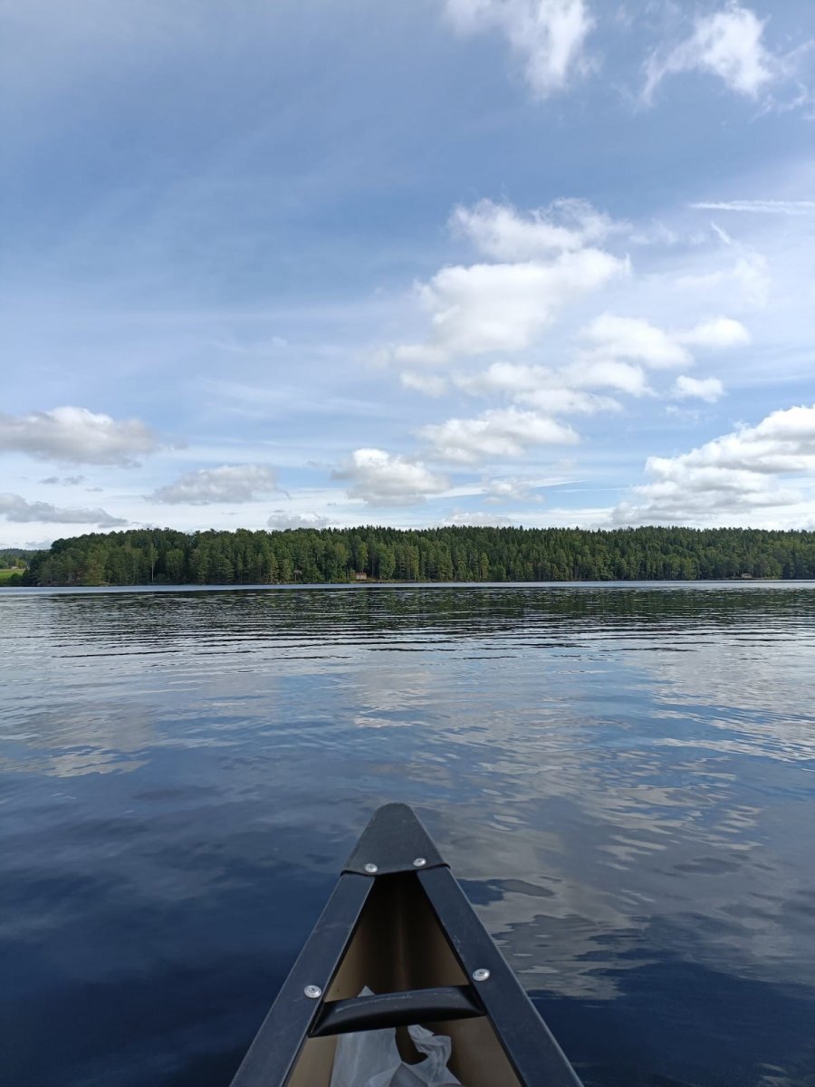 Weil Pferde nicht kotzen können haben wir Richard dabei. Nina war so nett und ergriff die Möglichkeit des Feuer machens, für den morgendlichen Tee. Erfolgreich. Geschwächt und mit etwas navigations unsicher als sonst fuhren wir den Svardlang weiter hinunter. Ein ruhiges Gewässer. Ganz anders als der Lelång, welchen wir die ersten Tage (Tag 1- 3) erkundet hatten. Der Tag startete gelassener, niemand wollte wirklich aus dieser friedlichen Stille ausbrechen und die Fische verschrecken … Nicht das die zahlreichen Angelversuche je Fisch auf den Teller gezaubert hätten. Das Katamaran fahren zwar auf den ersten Blick eine witzige Sache sein kann, effektiv aber nur mehr Stabilität mit sich bringt, fanden wir nach unserer Mittagspause heraus als wir zwei Kanus mit ein paar Holz-Pfählen zu eben solchen verbanden, immerhin hatten wir gleich Holz für unsere nächste Unterkunft, welches wir auch nutzten um über ihm Stockbrot zu grillen