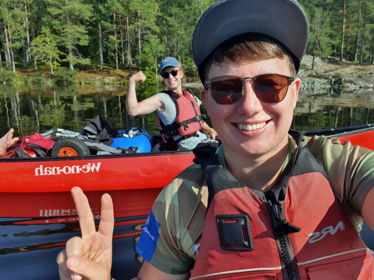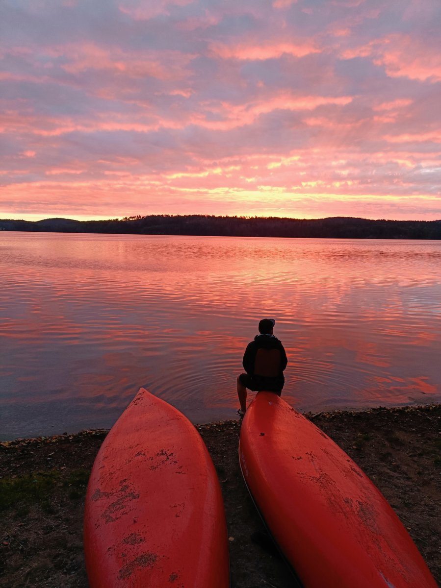 Wer mich kennt weiß das ich überall, zu jeder Zeit, immer schlafen kann. Besonders gut in fahrenden Umgebungen. Aber die Fahrt nach Schweden zum Start Camp hat alles übertroffen, nicht das Reisebusse für ihre Beinfreiheit bekannt wären… Gute Gesellschaft macht jedoch einiges wieder gut und so starteten wir nach Bus- und Fährfahrten gegen 12:00 Uhr unserer Abenteuer mit voll beladenen Kanus. Nicht alleine sondern in Begleitung unserer Bus- Bekanntschaften :) Die Schafe hatten zwar noch Locken, trotzdem haben wir beschlossen unseren ersten Tag langsam angehen zu lassen und suchten einen Lagerplatz auf einer Insel. Bauten entspannt Zelt und Hängematte für die Nacht auf, schwammen im See und kochten Kartoffeln mit Speck und Zwiebeln als Abendessen… Jetzt gilt es nur noch den fehlenden Schlaf nachzuholen und das Draußen zu genießen.