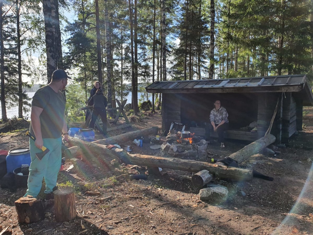 Am Vorabend noch begeistert von der Idee eine Sonnenaufgangstour zu machen, quälten wir uns heute morgen um so mehr aus unseren Schlafplatz - Hängematten unter dem Sternenhimmel. Der Weckruf ein wortwörtlicher Weckruf. Die Aussicht war das Aufstehen auf jeden fall Wert, auch wenn das ein kleine Schlaftirade nach sich zog als wir unseren heutigen Rastplatz erreichten. Übersetzen, Übersetzen & Übersetzen war das Motto des heutigen Tages, da die Schleusen zwei Tage nach unserer Ankunft schlossen. Ganze vier Mal hieß es heute Kanu, entladen, raus heben, … Unserer Rastplatz ein ehemaliges Wikinger-Grab ist nur ein Katzensprung vom Basis- Camp entfernt an dem wir morgen früh unsere Kanus mit Ausrüstung zurück geben. Ein Glück der Brösel Tee geht zu neige