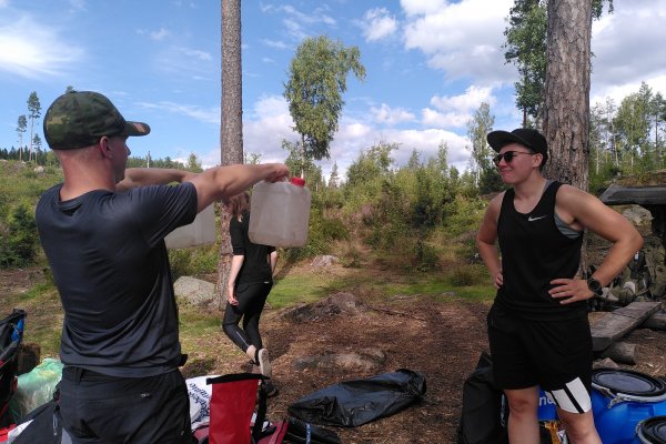 Langsam aber sicher schleicht sich eine gewisse Routine ein: frühstücken, lagerabbau, paddeln, brotzeit, paddeln, lageraufbau, Abend essen, abspülen, Tee am Lagerfeuer, schlafen. (Und vielleicht bei schlechten Bedingungen vor Ort darauf zu achten nicht von Mücken gefressen zu werden). Umso schöner ist es dann auch wenn man ein bisschen Zeit miteinander verbringen kann die sich nicht in diesem funktionellen System bewegt. Obwohl es heute die längste Strecke der geplanten Route war, hatten wir den Nachmittag "frei". Zeit zum Schwimmen. Zeit zum lesen. Zeit zum Beeren sammeln - und Mal ehrlich wann macht man das heut zu Tage noch. Zeit sich über die unterschiedlichen Dialekt lustig zu machen.