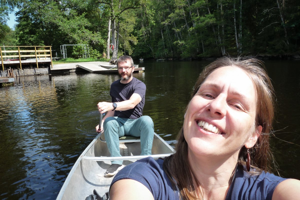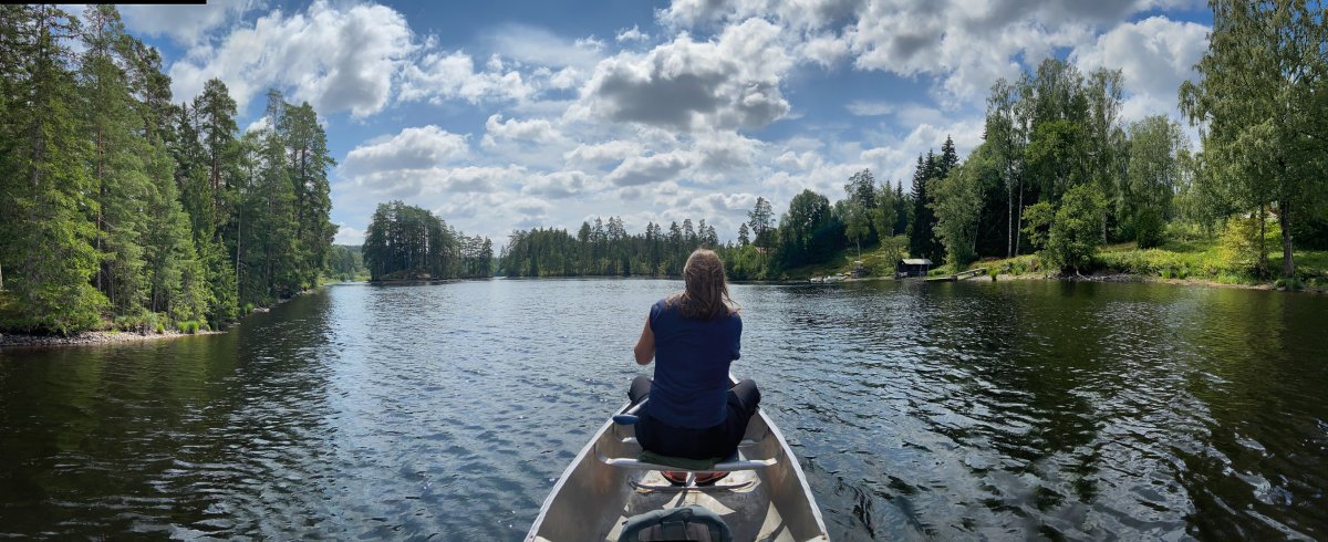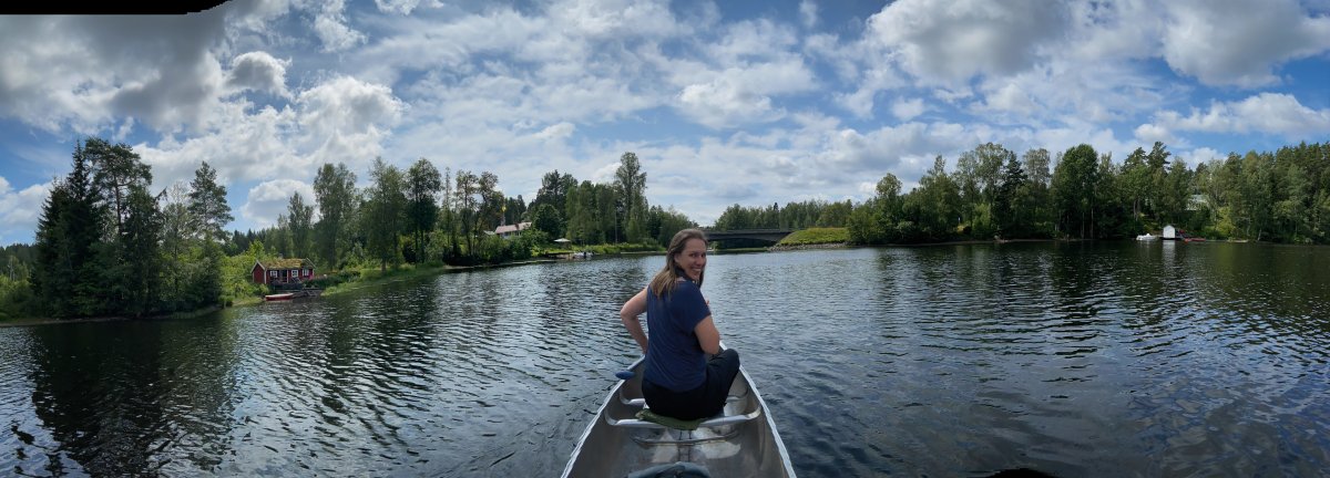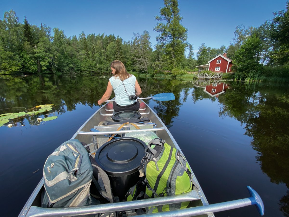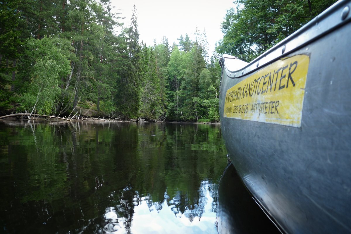 Endlich ging es aufs Wasser! Ausgestattet mit allem nötigen nahmen wir uns eins von den frei verfügbaren Booten und starteten unsere erste kleine Erkundungstour in Richtung See Stråken und machten uns mit Boot und Steuerung vertraut. Schon nach kurzer Zeit kamen wir mit der Aluminium Kanadier sehr gut zurecht.