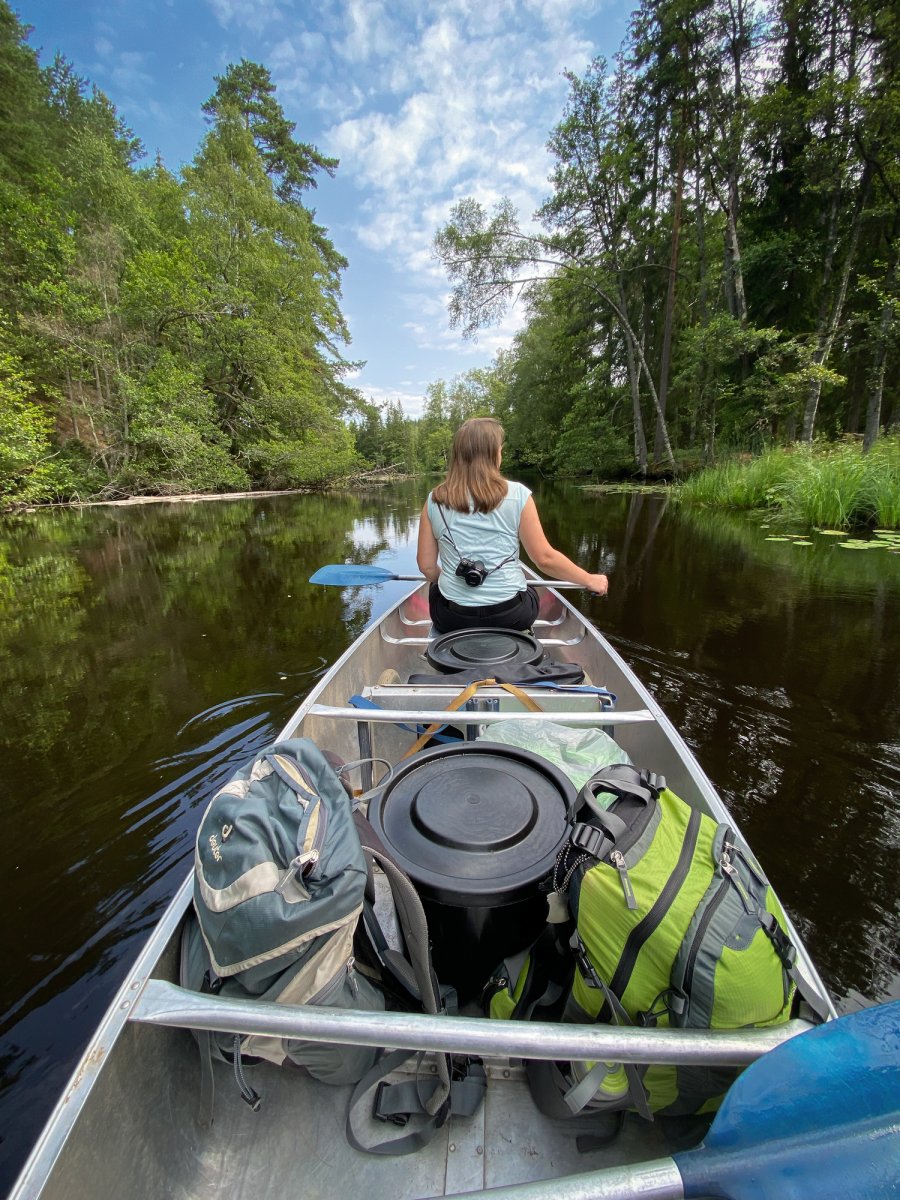 Heute wollen wir ein Stück weiter auf den See Stråken. Dabei faszinieren uns einzigartige Begegnungen mit der Flora und Fauna der Region. Am wundervollen Flussufer oder auf einer der traumhaften Inseln im seeartig anmutenden Fluss bieten sich unzählige Gelegenheiten für ausgedehnte Pausen im grünen. Wir haben uns für unsere Rast für eine der vielen traumhaften Inseln im Fluss entschieden. Elche gibt es auch hier nicht.