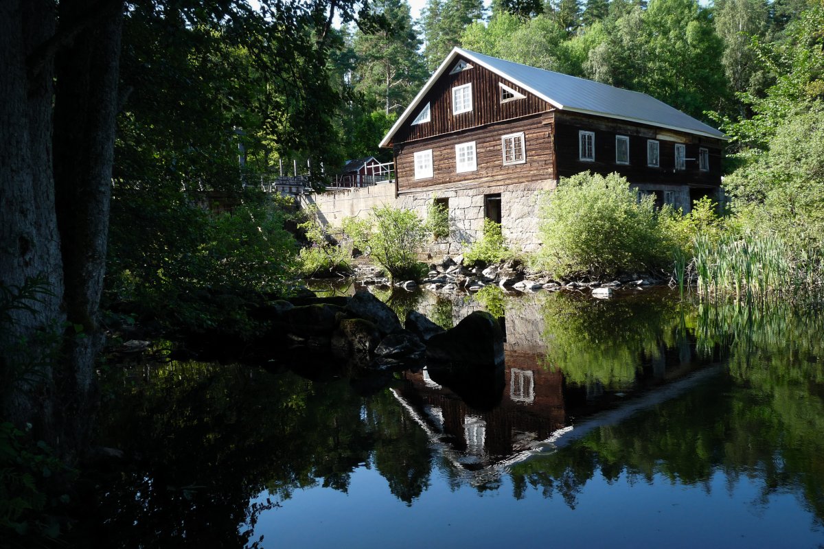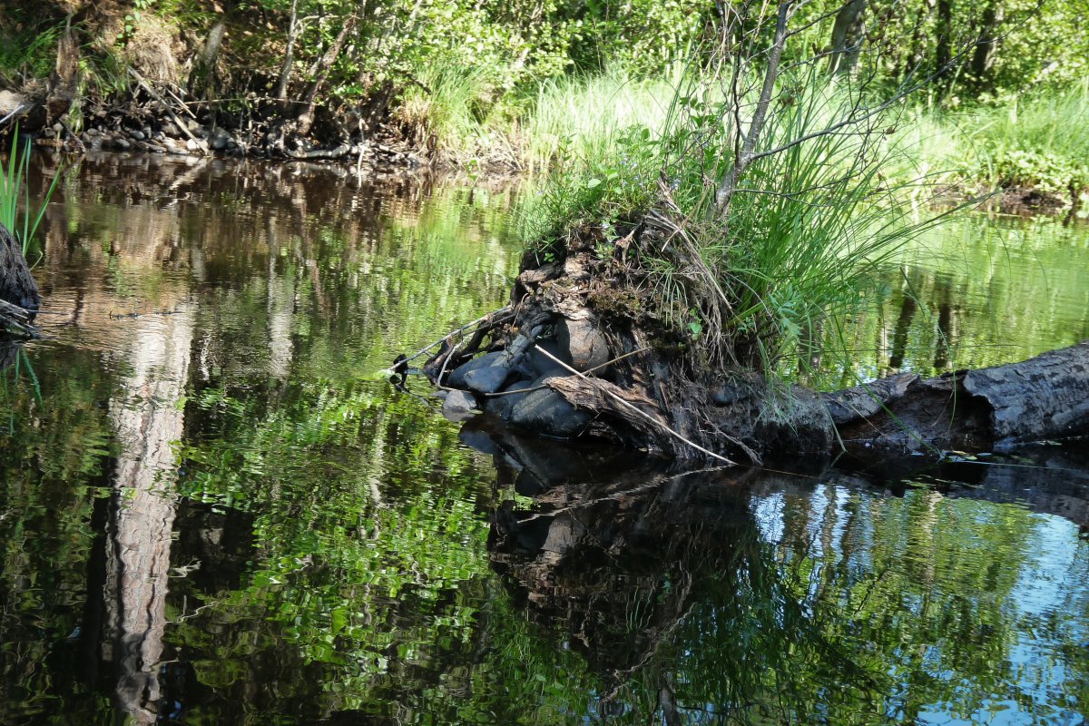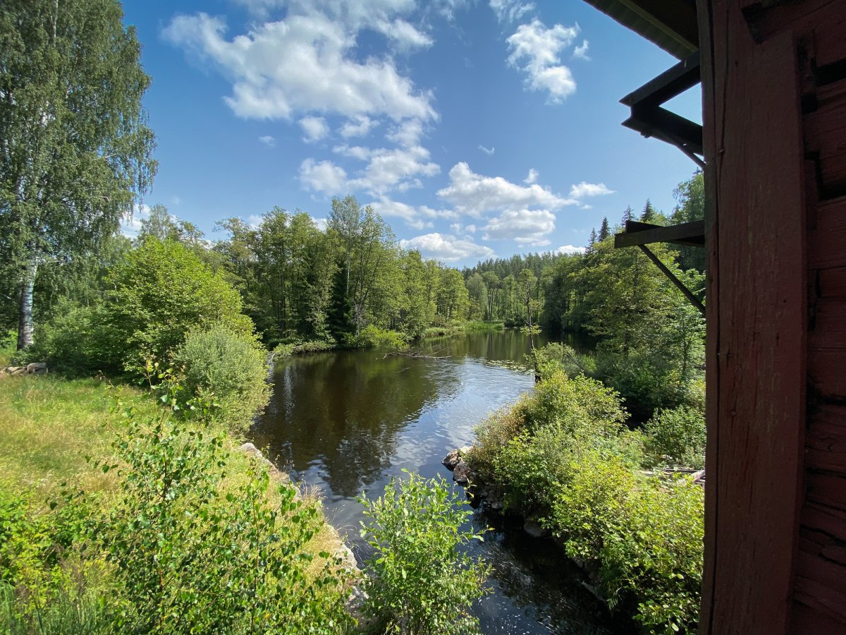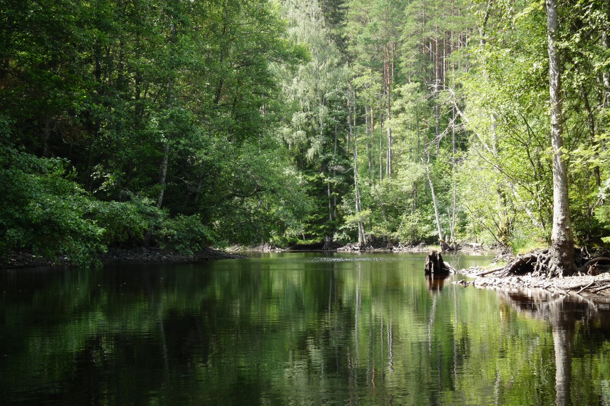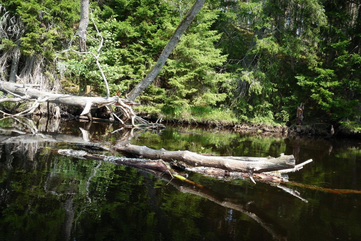 Bei Kaiserwetter startet unsere Tour durch schon bekannte Gefilde mit viel Neugier auf die bislang unbekannten Gegenden des Tidan. Das erste Umtragen an der ehemaligen Mühle – bis dahin waren wir schon gekommen - war dank Bootswagen einfacher als es das vollbepackte Kanu erwarten ließ und von nun an heißt es neue Traumlandschaften erkunden.