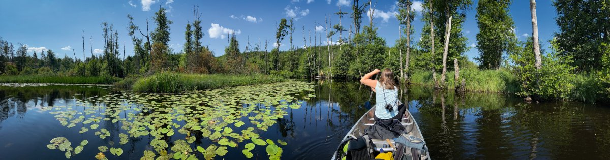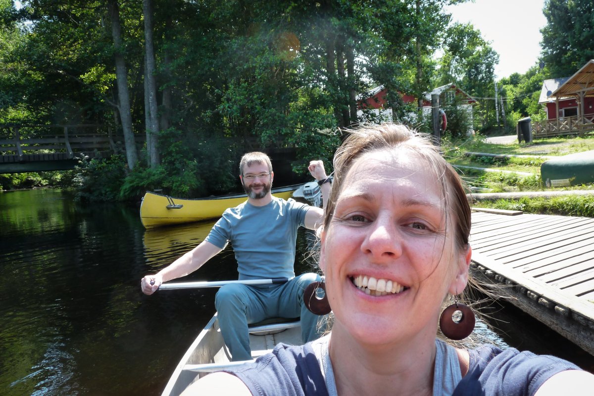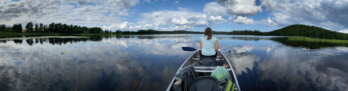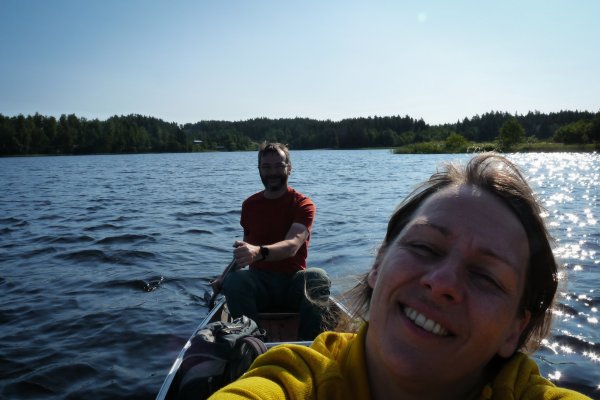 Anschließend packen wir zusammen und fahren den gleichen Weg zurück. Die Landschaften sind auch in umgekehrter Blickrichtung einfach nur atemberaubend. Mücken, Libellen, Enten und Schlangen sind auch diesmal unsere Wegbegleiter, Elche hingegen nicht.