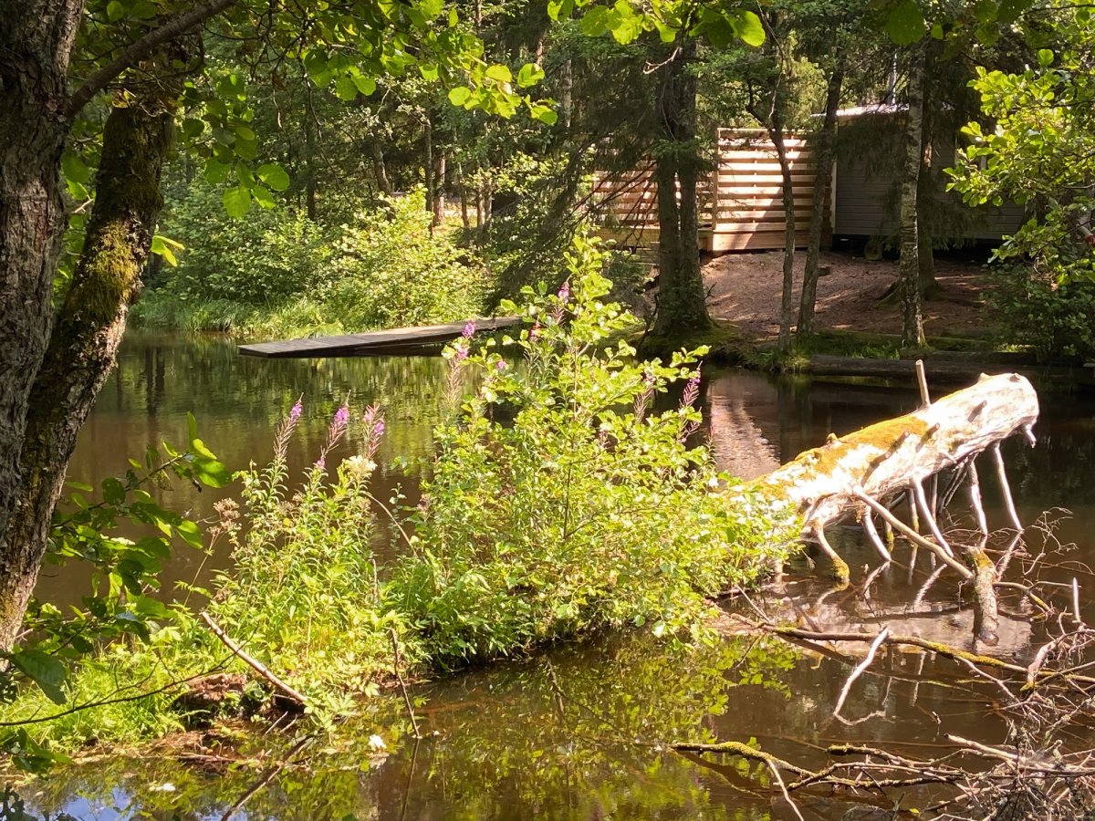 Endlich am Camp angekommen, wurden wir sehr freundlich und hilfsbereit von einer jungen Dame in Empfang genommen, die uns auch gleich den Weg zu unserer gebuchten Hütte zeigte. Die tolle Anlage des Kyrkekvarn Kanucenters präsentiert sich weitläufig, idyllisch sowie ruhig und am tollen Fluss Tidan. Unser erster Eindruck: Hier ist es einfach nur schön! Ein Erkundungsspaziergang über die extrem weitläufige und großzügige Anlage bestätigte den ersten Eindruck und wir freuen uns auf eine traumhafte vor uns liegende Urlaubswoche. Mit etwas Glück würden wir vielleicht sogar Elche zu Gesicht bekommen…