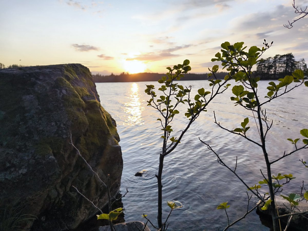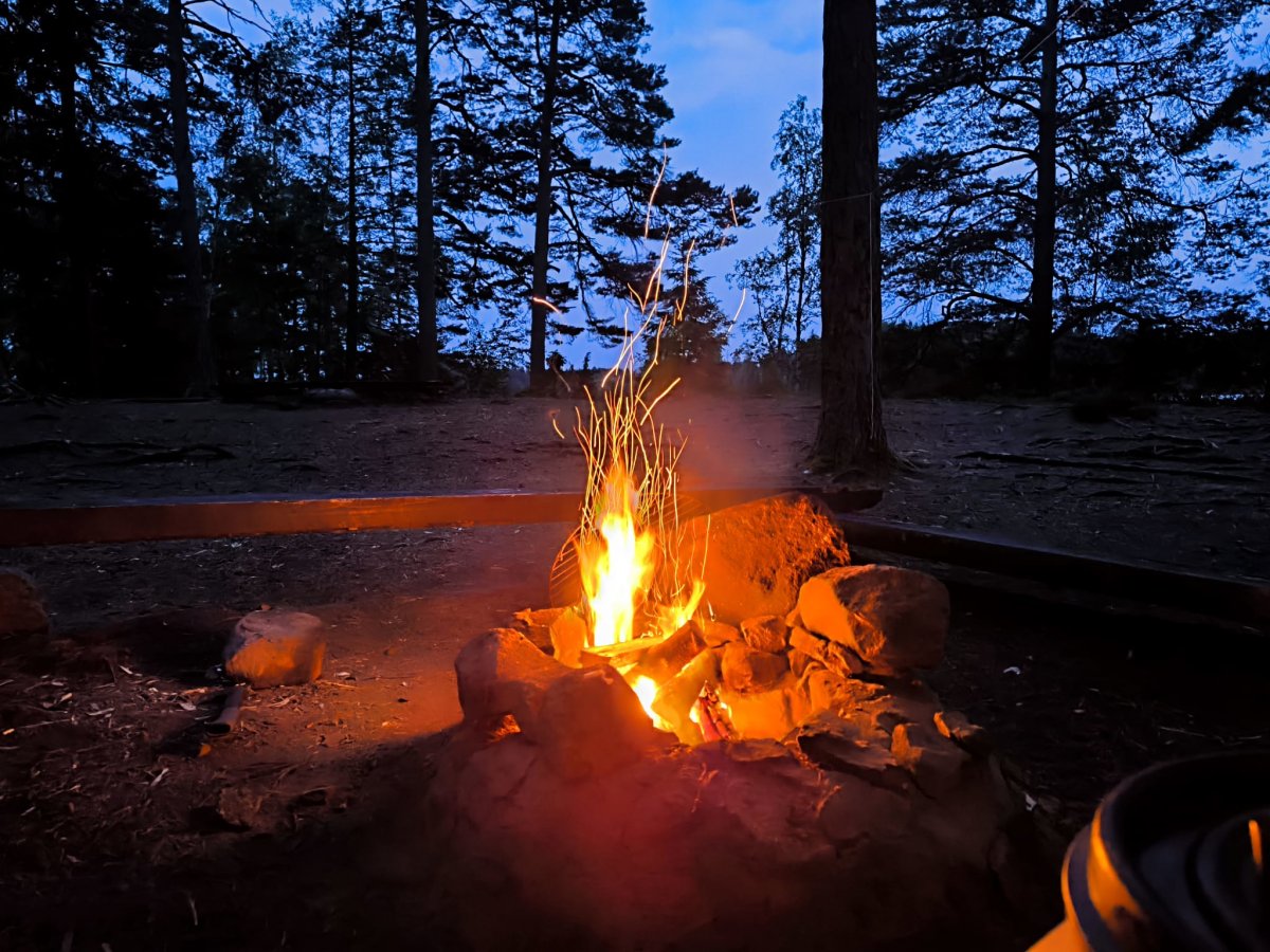 Dann begann das eigentliche Abenteuer: Wir stiegen ins Kanu und paddelten hinaus auf das Wasser, um unseren ersten Lagerplatz zu erreichen – eine kleine Insel mitten in der traumhaften Natur Schwedens. Der Platz war perfekt. Wir machten ein Lagerfeuer, kochten zusammen und erkundeten die Insel zu Fuß. Es war beeindruckend, wie viel es dort zu entdecken gab.