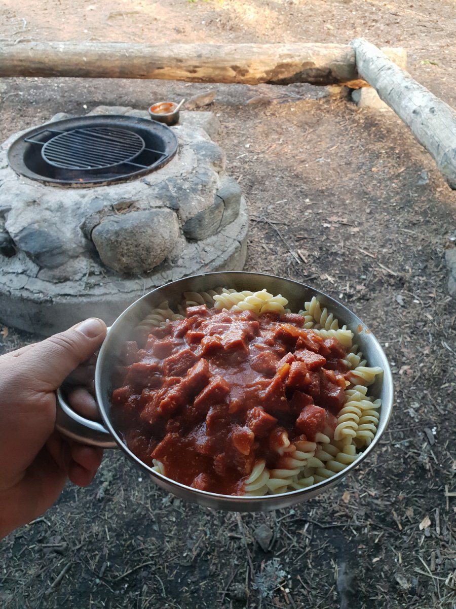 Der Tag begann mit einem guten Kaffee und der Kontrolle der Wildtierkamera, die leider nichts aufgenommen hatte. Wir wollten uns ab jetzt nur noch in der Umgebung bewegen, da sonst alles ein bisschen knapp werden könnte. Also entschieden wir uns, die Gegend ein bisschen zu Fuß zu erkunden und ein bisschen mit dem Kanu herum zu fahren. Da das Dano 15 nicht besetzt war, ließen wir den Tag dort mit Angeln, Baden, Relaxen und Fotografieren ausklingen. Zum Abendessen gab es Reis mit Gemüse und Pilzen vom Spirituskocher, da an diesem Tag schon Feuerverbot galt. Danach paddelte ich noch etwas übers Wasser, um schöne Bilder vom Sonnenuntergang zu machen, die wie ihr ja schon sehen konntet perfekt geworden sind :-) Wir genossen noch etwas den Abend im Schlafsack und schliefen ein.