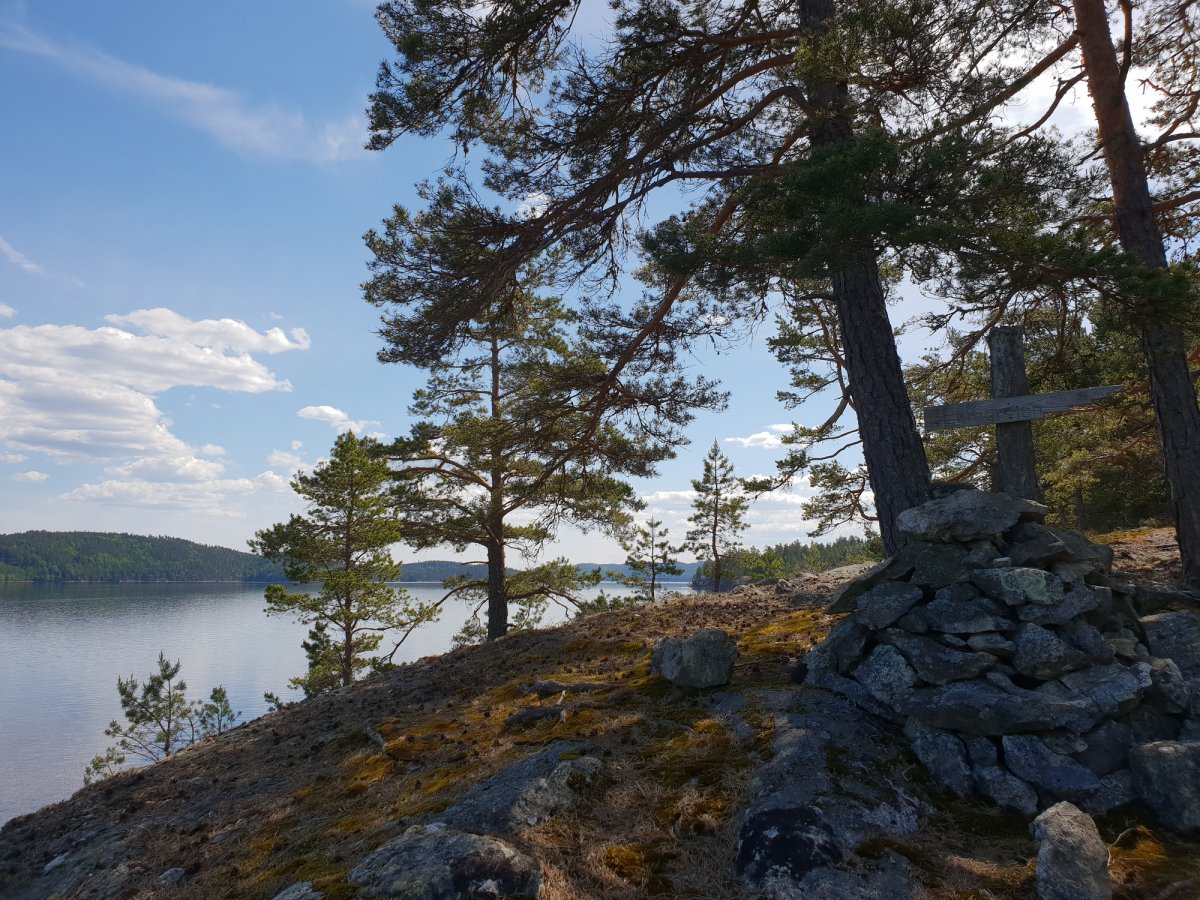 Guten Morgen Schweden. Über unserem Kocher machten wir uns einen Kaffee und erfrischten uns mit kaltem Seewasser. Das Kanu und wir waren startklar auf dem Weg nach Nössemark. Wir machten einen kurzen Stopp auf der Trollinsel. 20 Minuten später ging es auf norwegischer Seite weiter in Richtung Dano 6, wobei wir bei einer kurzen Verschnaufpause ein Kreuz mit der Aufschrift "Lothar Jän 1999" entdeckten und kurz in uns kehrten. Es ging weiter mit voller Kraft voraus in Richtung Dano 6, wo wir gegen 18 Uhr ankamen. Wir entschieden uns nach einem kurzen Halt weiter Richtung Nössemark zu paddeln. Auf dem Weg trafen wir auf eine Seilzugfähre mit nettem Kapitän, der uns zuwinkte, während wir warteten, dass wir passieren konnten. Voller Tatendrang (wir waren ja auch schon lang unterwegs) verpassten wir die Einfahrt nach Nössemark und bogen eine Bucht später ab. Da mussten wir feststellen, dass es leider nicht weiter geht. Also mussten wir wieder ein Stück zurück, um nach Nössemark zu kommen. Nach ca. zwei Kilometern sahen wir dann auch den Steg mit dazugehörigem Campingplatz - Gott sei Dank, da es mittlerweile auch schon 21 Uhr war. Nachdem wir angelegt hatten, sahen wir uns nach einem Betreiber um, fanden aber leider niemanden. Also beschlossen wir auf gut Glück, trotzdem unser Zelt aufzubauen. Wir aßen noch eine Kleinigkeit und gingen schlafen.