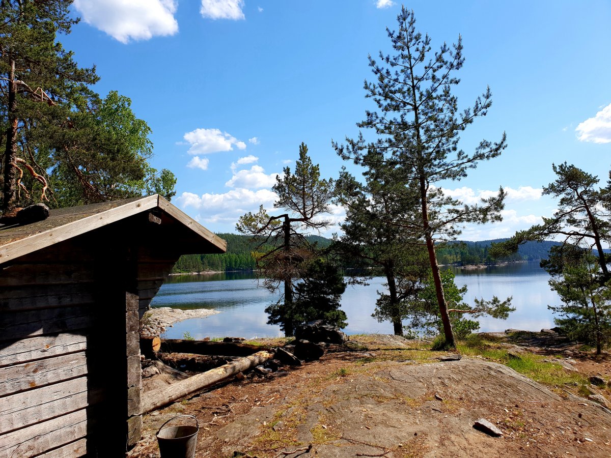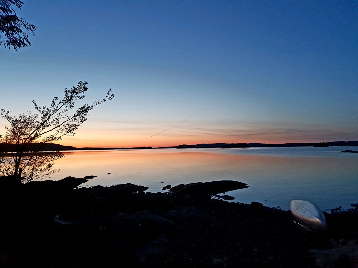 Es war gegen 10 Uhr, als der kleine Einkaufsmarkt öffnete. Wir stärkten und mit einem Kaffee und einem tollen Stück Kuchen - besser kann ein Tag nicht beginnen. Als kleines Andenken und Mitbringesel kaufte ich noch ein Glas Heidelbeermarmelade aus der Region, die sehr lecker war. Das es schon fast Mittag war, mussten wir leider wieder los um wieder Richtung Lennartsfors zu kommen. Also verabschiedeten wir uns und paddelten los. Wir kamen wieder vorbei an dem netten Fährmann, der uns wieder freundlich zuwinkte und machten dann ein Päuschen an Dano 7 und genossen die weite Landschaft. Es ging weiter bis zur Trollinsel, Dano 9, 10, 11 und 17, wo leider schon alles mehr als belegt war. Wir entschlossen uns, quer über den See in Richtung Dano 16 (nachdem auch dort alles belegt war) auf einer Landzunge zu zelten. Nach diesem zweiten langen Paddeltag schlugen wir das Zelt auf und machten uns ein paar Bockwürstchen warm. Ich stellte noch meine Wildtierkamera auf und legte mich in den Schlafsack.