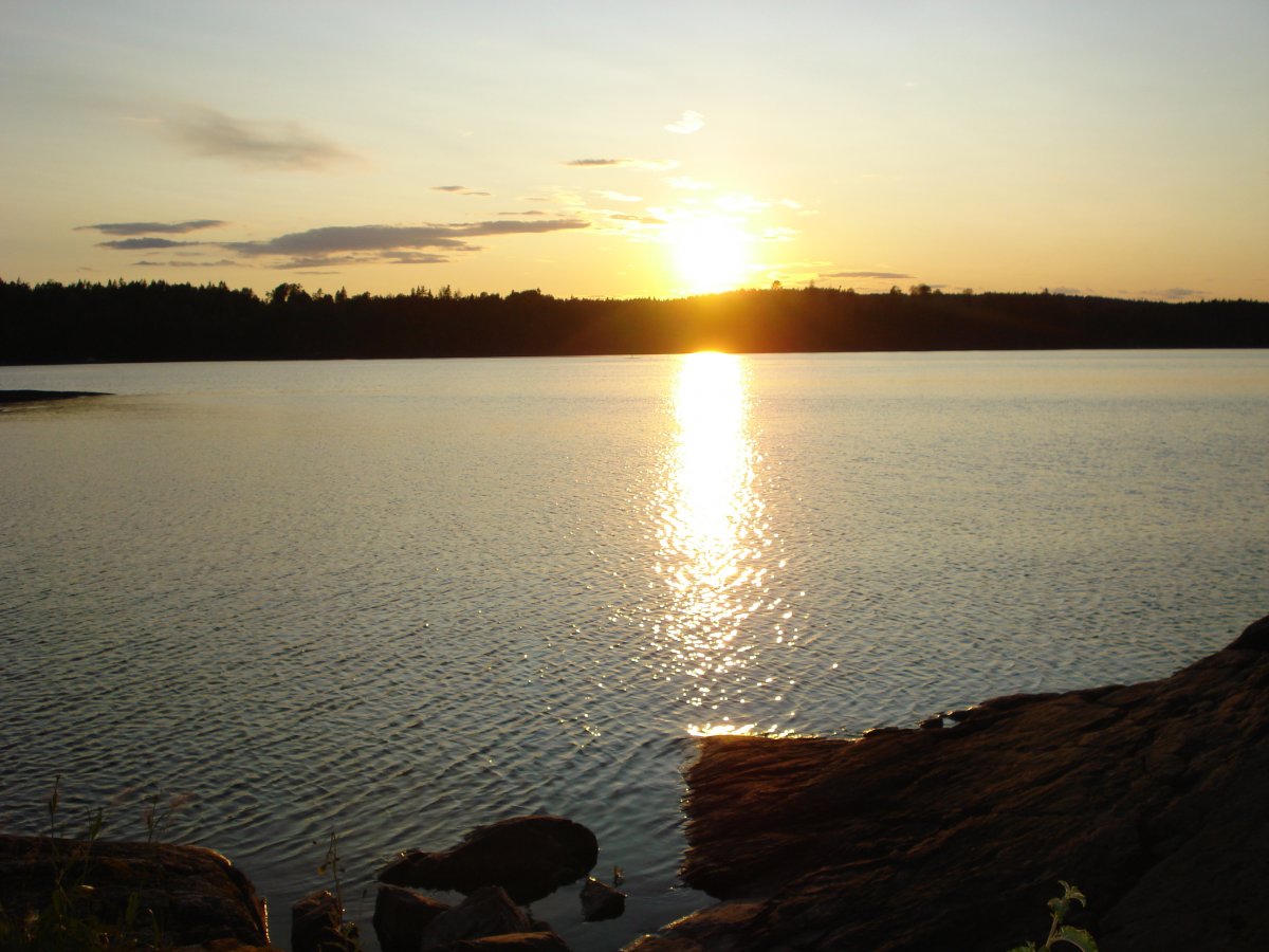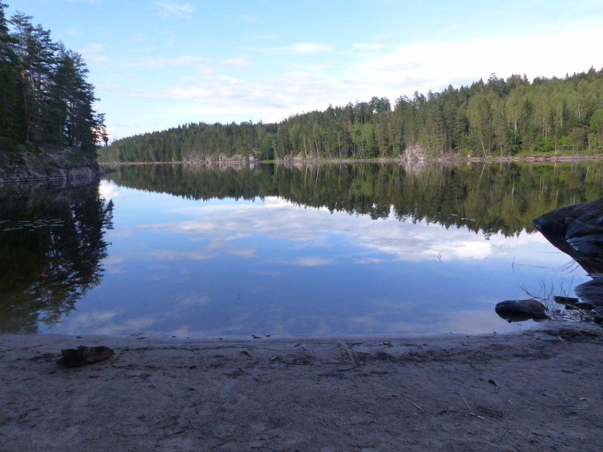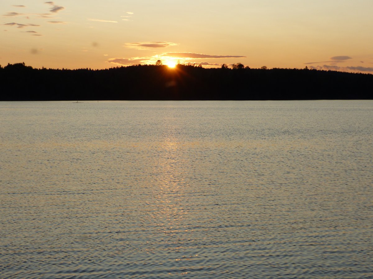 An diesem ersten Tag beschlossen wir das Thomas einen Kanadier alleine fährt und mein Sohn und ich den zweiten Kanadier fahren. So ging es dann los. Das Erste Dano das wir erreichten war Dano 12. Dieses war noch frei und wir entschieden dort unser erstes Camp zu errichten da wir von der Busfahrt doch etwas platt waren. Nach einem guten Abendessen und einer etwas windigen ersten Nacht ging es nach dem Frühstück am nächsten Tag weiter. Am Dano 41 packten bei unserer Ankunft grade zwei Pärchen ihre Sachen um weiter zu fahren. Da für diesen Tag das Wetter schlecht vorher gesagt war beschlossen wir dort unsere zweite Nacht zu verbringen. Dies erwies sich als gute Endscheidung da es an diesem Tag mehrfach stark regnete. Bei einer dieser Regenschauern Landete eine gemischte Truppe von 6 Personen bei uns an um sich unter zu stellen bis der Regen nach ließ. Die 6 kannten wir schon von der Busfahrt da sie mit uns in Köln zugestiegen waren. Im Laufe des Tages gesellten sich noch ein 19 Jähriger mit seinem 77 Jährigem Opa zu uns die die Reise mit einem 40 Jahre altem Faltboot und einem vor Ort Geliehenen Kanadier auf Eigeninitiative unternahmen. An diesem Abend haben wir Salami-Käse Pizza gebacken die einfach genial war. Wir fuhren dann nach dem Frühstück des folgenden Tags weiter zu Dano 15. Dort gesellten sich zwei Holländerrinnen zu uns die über einen Anderen Anbieter reisten. Später am Abend kam noch eine 4 Köpfige Familie die wiederrum über Scandtrack reiste dazu. Am nächsten Morgen endschieden wir zum Dano 19 weiter zu fahren. Da wir inzwischen aus unseren Booten ein Katamaran gemacht hatten der sehr stabil war kamen wir ganz gut voran bis wir auf den eigentlichen See kamen. Durch den Wind waren dort die Wellen ziemlich hoch und wir hielten uns so dicht wie möglich am Ufer. Trotzdem konnten wir es nicht vermeiden das einiges an Wasser in die Boote schwappte obwohl wir bemüht waren die Wellen frontal anzufahren.