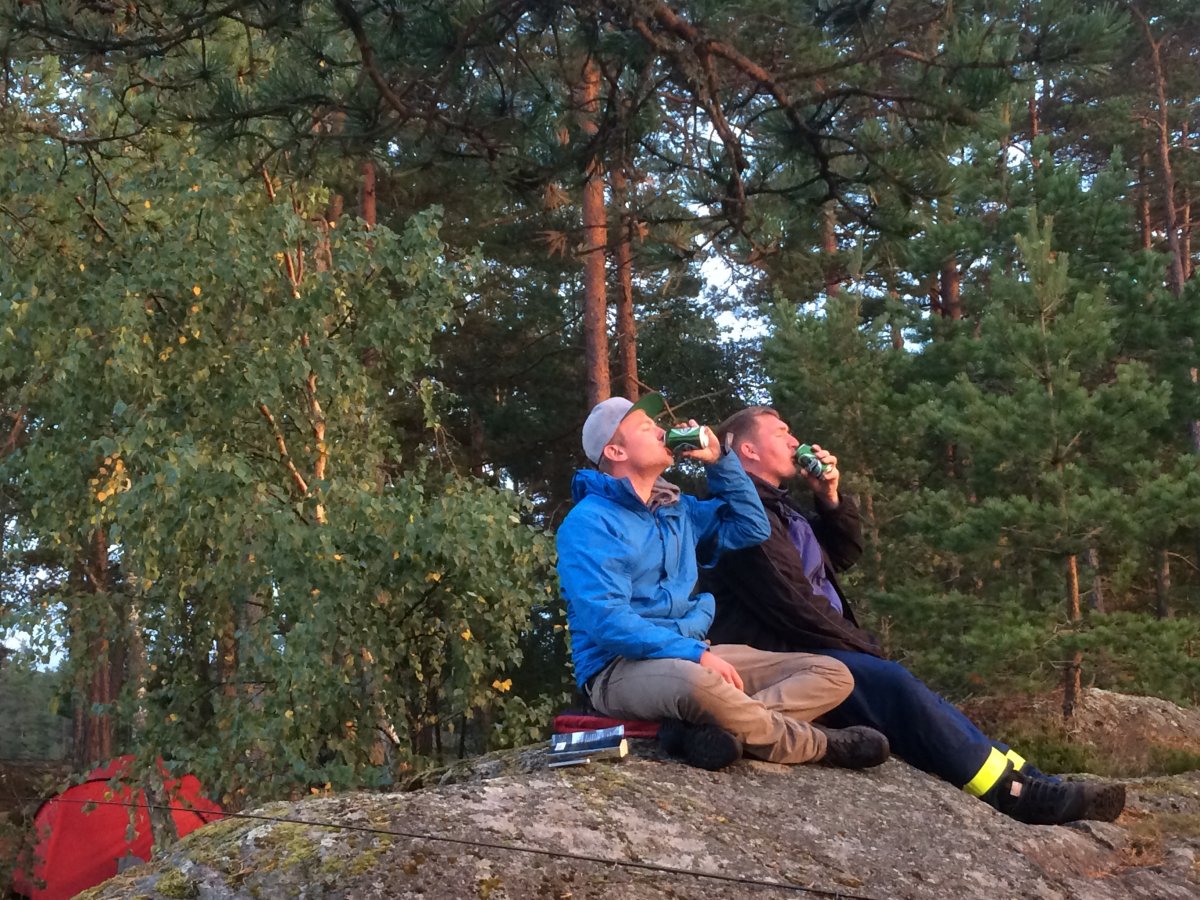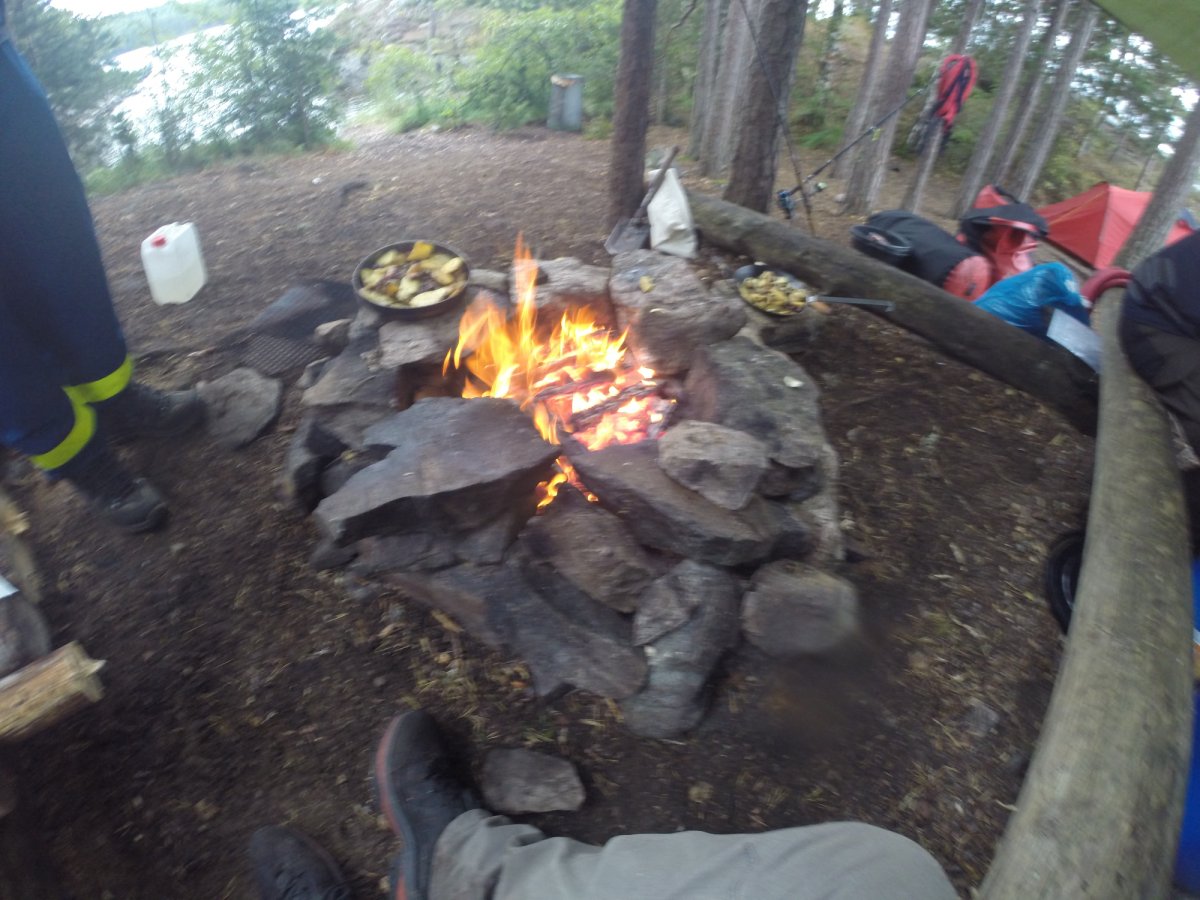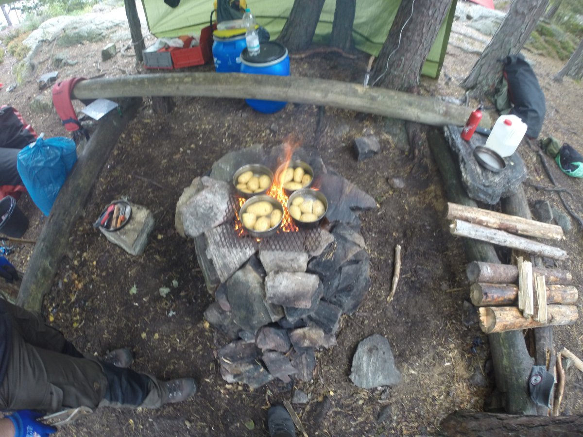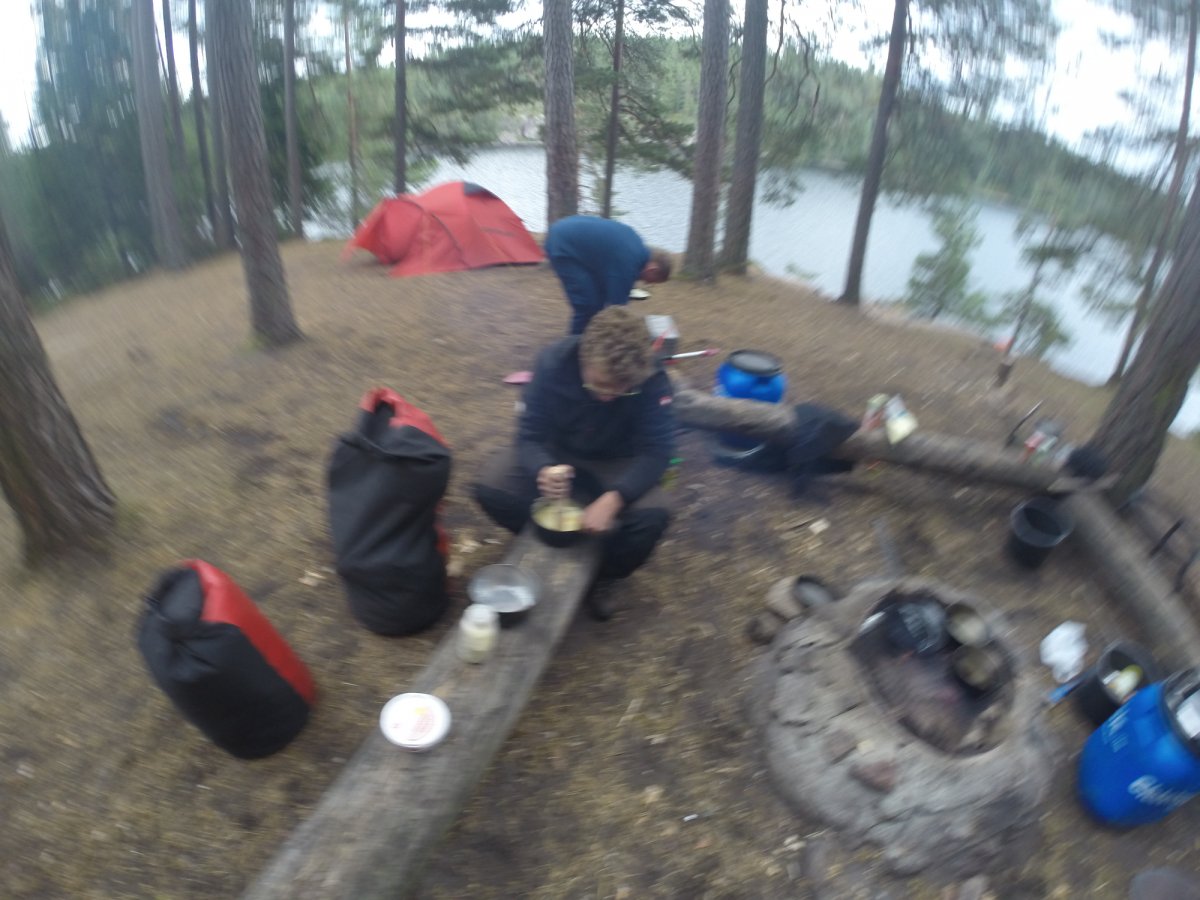 Ab jetzt ging das Survivaln los. Während unserer Reise sind wir mehrere kleinere Inseln sowie Trollön aber auch einige Stellen am Festland angefahren. Alle Plätze ob Camping ground oder nicht waren sehr natürlich und wirklich sauber. Die Zelte die dann von uns das erste Mal aufgebaut worden sind, waren gesäubert und hielten dem schwedischen Wetter stand sowohl Regen als auch starkem Wind. Wichtig ist nur, dass das Innenzelt nicht mit dem Außenzelt in Berührung kommt. Natürlich ist die eigene Insel der Hit. Man sollte nur darauf achten das eben auf den Inseln nicht immer der Platz für ein Zelt da ist, da dieser durch Bäume und deren Wurzeln sowie Felsen und Büsche begrenzt sein könnte. Die auf der von Scandtrack eingezeichneten Camping grounds müssen von Gruppen von fünf und mehr Personen benutzt werden und besitzen alle eine Biotoilette. Für Gruppen von vier und weniger Personen gilt das "Jedermanns recht" sowie das Recht der Klappspatentoilette. So durften wir uns auch in der freien Natur ein schönes Plätzchen suchen. Aber Feuer darf trotzdem nur an vorgefertigten Feuerstellen gemacht werden.