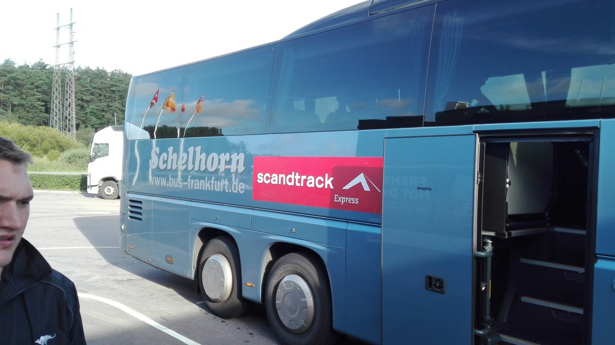 14 Tage vor Beginn der Reise haben wir dann auch alle Unterlagen ( Greencard, Ausleihscheine, Reisescheine, Buspass, etc.) erhalte. Da wir den Bustransport mit gebucht hatten, sind wir mit Zug nach Hamburg gefahren und von dort aus hat der Scandtrack Bus uns dann vom Omnibusbahnhof Hamburg mit nach Schweden genommen. Hier sei zu erwähnen, dass unser Bus über eine Stunde Verspätung hatte. Scandtrack hat uns darüber aber extra kurz vorher telefonisch informiert was wir wirklich ausgesprochen gut fanden, da wir so noch etwas zeit auf der Reeperbahn verbringen konnten.