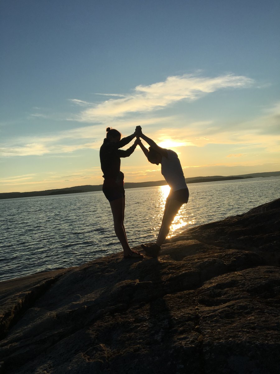 Schwimmwesten an, acht voll bepackte Boote ins Wasser und dann ging es nach einer kurzen professionellen Einführung in die Paddeltechnik, auf den See Foxen mit Ziel den 1. Lagerplatz auf einer kleinen romantischen Insel zu finden. Ohne viel Sucherei fanden die jungen Schwedenentdecker auf Anhieb das auserkorene DANO mit der Nummer 11 und konnten ihre Boote zum ersten Mal aus dem Wasser ziehen und die Zelte aufschlagen. Leider durften die Naturgenießer wegen dem trockenen, heißen Sommerwetter kein offenes Feuer machen. Also musste auf Holz sammeln und Lagerfeueratmosphäre leider verzichtet werden und die abendlichen warmen Mahlzeiten auf acht kleinen Spirituskochern statt auf dem offenen Feuer zubereitet werden.