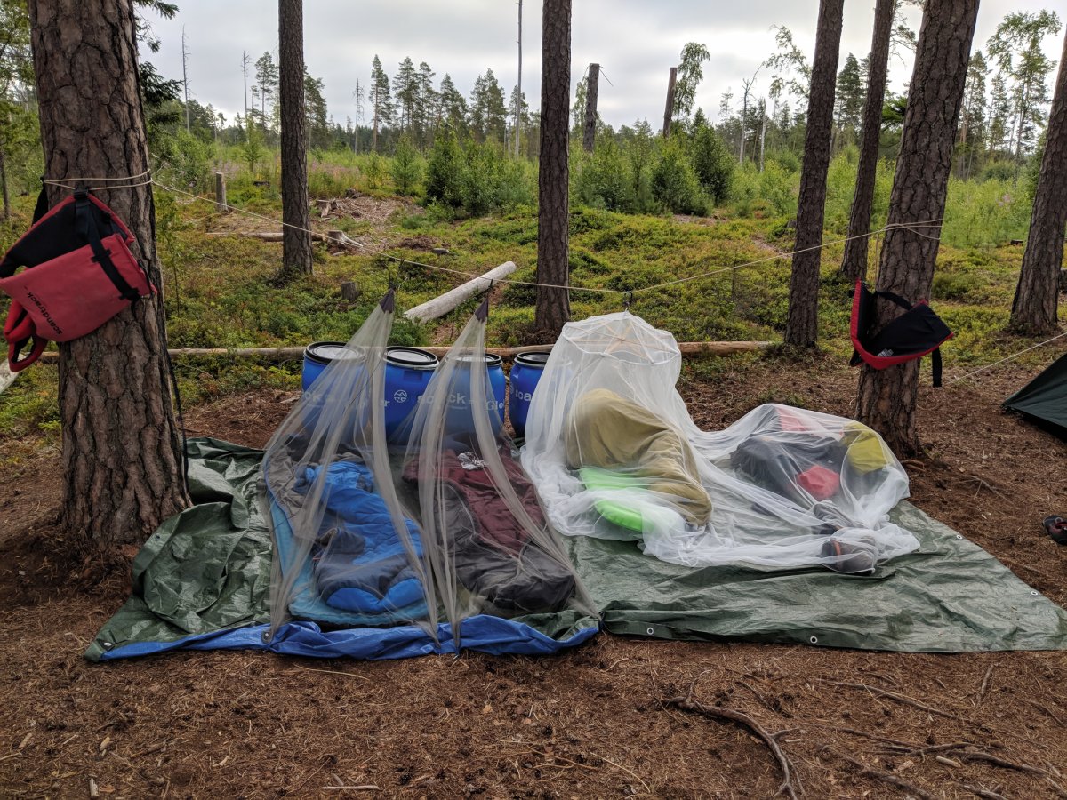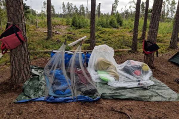Die längste und anstrengendste Strecke paddelten die Nordreisenden am vorletzten Tag. Früh am Morgen ging es los. DANO 30 wurde auf Wiedersehen gesagt und dem Ziel das DANO 13 zu erreichen entgegengefiebert. Zwischendrin trugen die starken Paddler ihre Kanus noch einige Kilometer im strömenden Regen um und gönnten sich auf der anderen Seite erstmal eine Stärkung aus den Scandtrack-Tonnen, damit auch das letzte Stück des Weges gemeistert werden konnte.