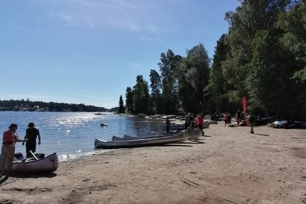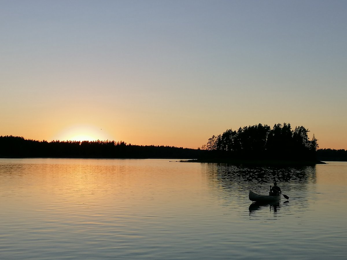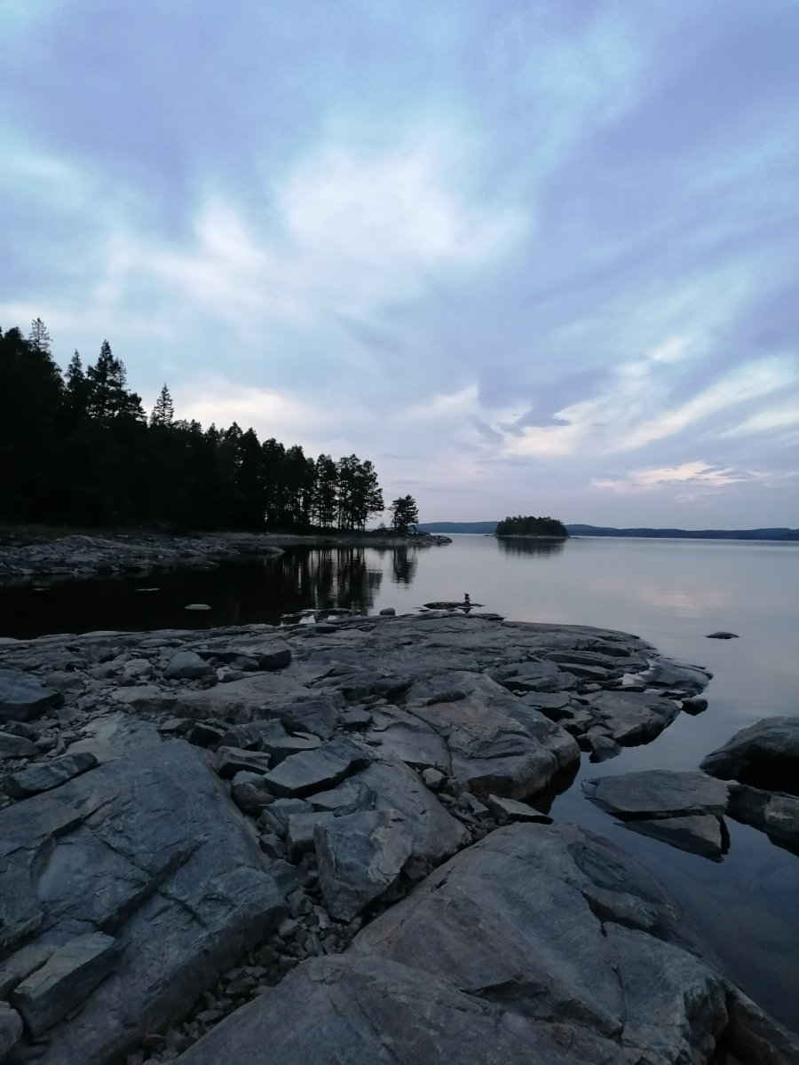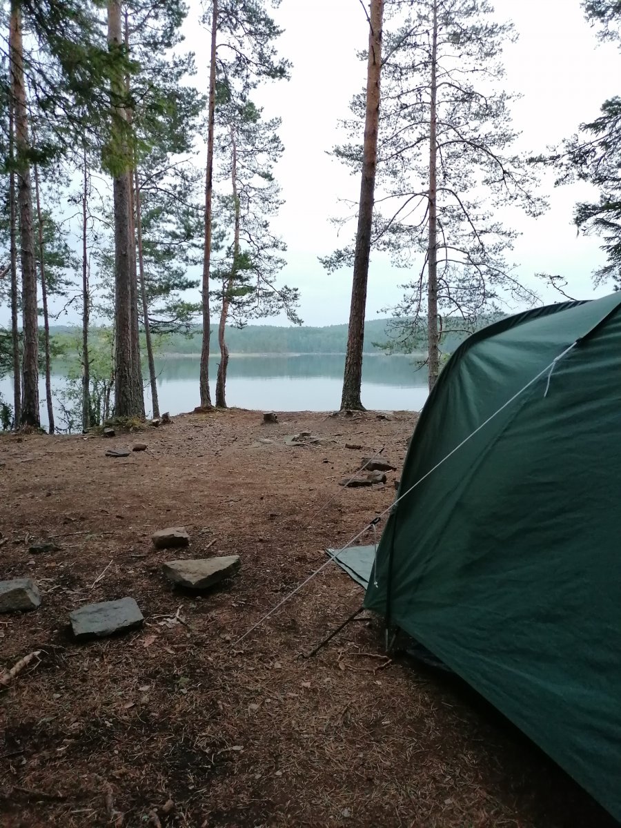 Alles begann mit Bestem Wetter für eine Kanutour. Sonne, ein leichtes Lüftchen und angenehme Temperaturen machten noch mehr Lust drauf, den ganzen Tag auf dem Kanu im Wasser zu verbringen. Vorab hatten wir uns natürlich schon Gedanken gemacht, wo wir mindestens mal hinfahren wollen, und so steuerten wir zielgerichtet auf den ersten kleinen Seitenarm zu und paddelten recht weit rein. An den Ufern konnte man hin und wieder Leute sehen, die bereits Ihr Lager aufgeschlagen hatten, also fingen wir auch an nach einer geeigneten Stelle zu suchen. Dies fiel uns am ersten Tag gar nicht mal so leicht. Schließlicht entschieden wir uns dann an einem kleinen Strand halt zu machen und dort ein Lager aufzubauen. Da der Platz dort recht begrenzt war überlegten wir uns, ob wir die Nacht ohne Zelt unterm Sternenhimmel verbringen sollten, doch viel wichtiger war es uns dann in dem Moment nach der langen Busfahrt und bei dem schönen Wetter einmal in den See zu springen und uns zu erfrischen. Als wir dann auch gedanklich endlich angekommen waren entschieden wir uns abends nochmal loszuziehen und einen besseren Schlafplatz zu finden, also fuhren wir den Seitenarm wieder runter und fanden schließlich die für uns perfekte Stelle für die erste Übernachtung. An diesem Platz haben wir auch das erste und letzte Mal versucht einen Fisch zu angeln, wobei wir als komplett unerfahrene Angler recht schnell wieder aufgegeben haben und uns lieber dem Dosenfisch aus der Futtertonne gewidmet haben. Da jedoch auch die ein oder andere Mücke übers Wasser flog konnte man hin und wieder Fische aus dem Wasser springen sehen was für uns jedoch hieß, dass wir uns gut mit „Antimückenspray“ einsprühen sollten. So ging dann schließlich der erste Tag vorbei. Am ersten Morgen fiel uns dann während des Frühstücks auf, dass wir das Outdoor-Kochbuch von Scandtrack in unserer Handgepäck-Tasche im Camp vergessen hatten. Nach Rücksprache mit dem Scandtrack-Team konnten wir zurück paddeln und uns das Buch noch holen. Somit waren die kommenden Kochsessions auch gerettet.