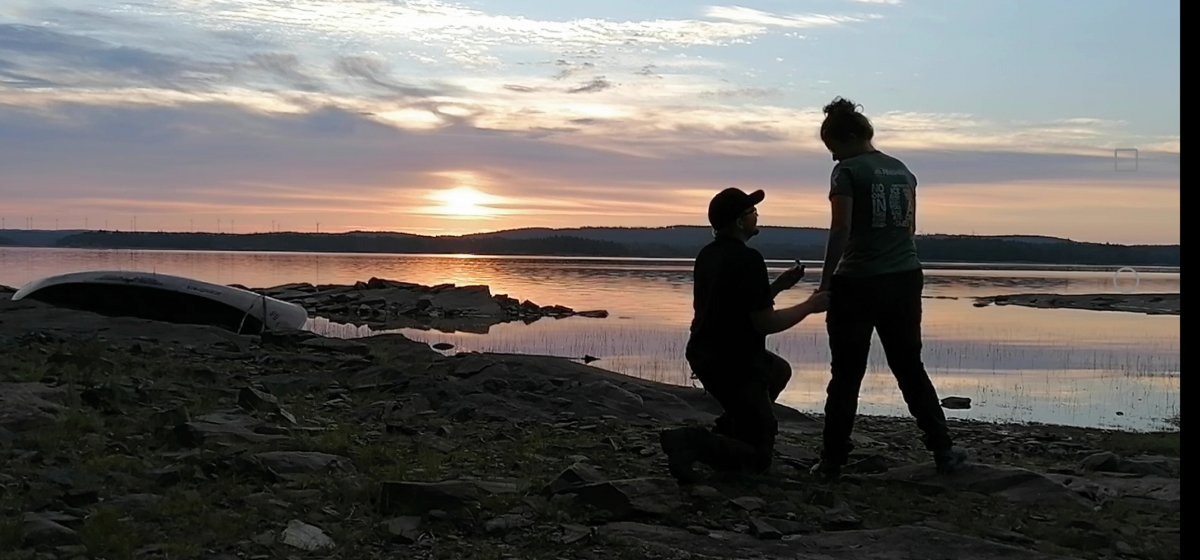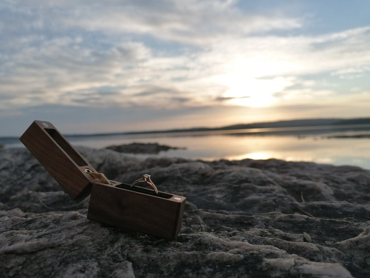 Am zweiten Tag waren wir wieder lange auf dem Wasser unterwegs, sodass es wieder etwas gedauert hatte, bis wir einen freien Platz zum Übernachten fanden. Die zweite Nacht verbrachten wir dann auf einer kleinen Insel. Für den Nächsten Tag hatten wir uns bereits fest vorgenommen früh aufzustehen, weil wir zu einem Autofriedhof und runter bis nach Norwegen paddeln wollten, also haben wir uns Wecker für 5:15 Uhr gestellt, um noch gemütlich frühstücken und eine Runde im See schwimmen zu können. Als wir dann morgens aus dem Zelt schauten und diesen unglaublich tollen Sonnenaufgang sahen, mussten wir direkt ein paar Fotos machen. Und dann kam er. Der Moment, der diese Reise zu etwas ganz Besonderem gemacht hat. Ganz unerwartet ging mein Freund auf die Knie und hielt um meine Hand an. Das war der perfekte Morgen. Der perfekte Augenblick. Und somit setzten wir die Reise als verlobtes Paar weiter.
